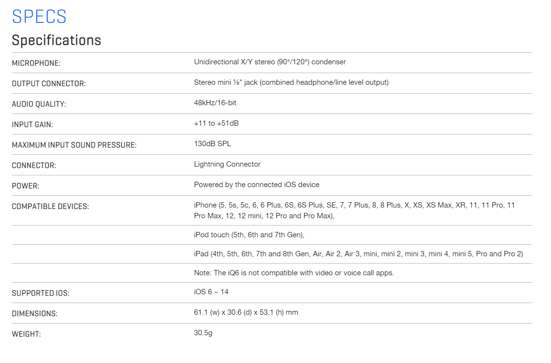 ✨Thiết bị ghi âm cho iOS (iPhone, iPad) ZOOM iQ6 – Hàng Chính Hãng