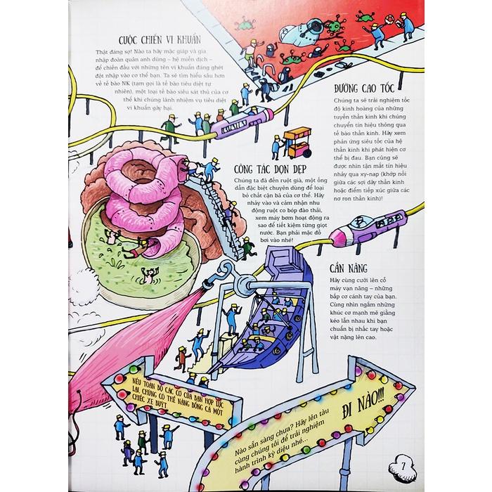Với hình minh họa cách điệu nhưng rất cụ thể, các thông tin khoa học đưa ra cực kỳ dễ hiểu và rõ ràng, không còn là các kiến thức khô khan nhàm chán nữa. Cơ thể người được hình dung theo cách đầy trí tưởng tượng và thú vị và đi kèm với văn bản có kích thước nhỏ, chứa đựng lượng thông tin cực lớn, ngay cả những ý tưởng phức tạp cũng dễ hiểu. Độc giả có thể có cái nhìn sâu hơn về hoạt động của toàn bộ cơ thể người.