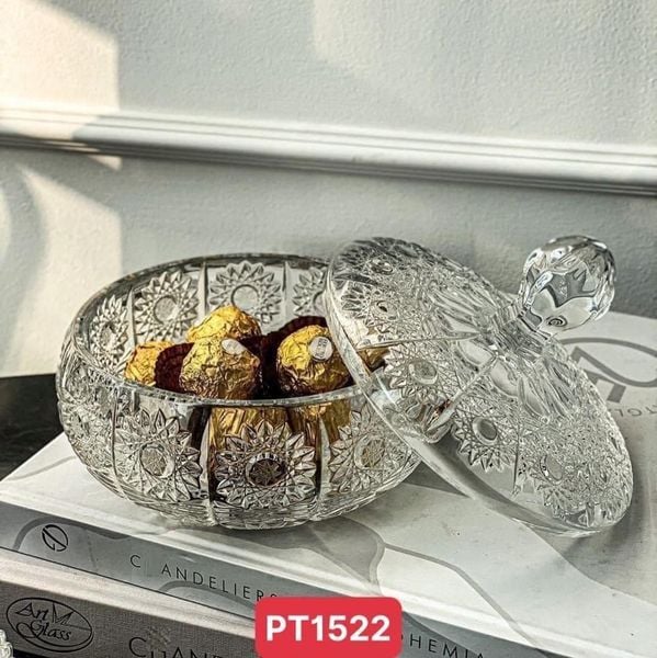 Thố dùng trên bàn tiếp khách ngày Tết như đựng mứt kẹo, hoa quả sấy, ô Kích thước 19cm "lấp lánh long lanh" khúc xạ ánh sáng tuyệt đẹp. Những mảnh pha lê được cắt