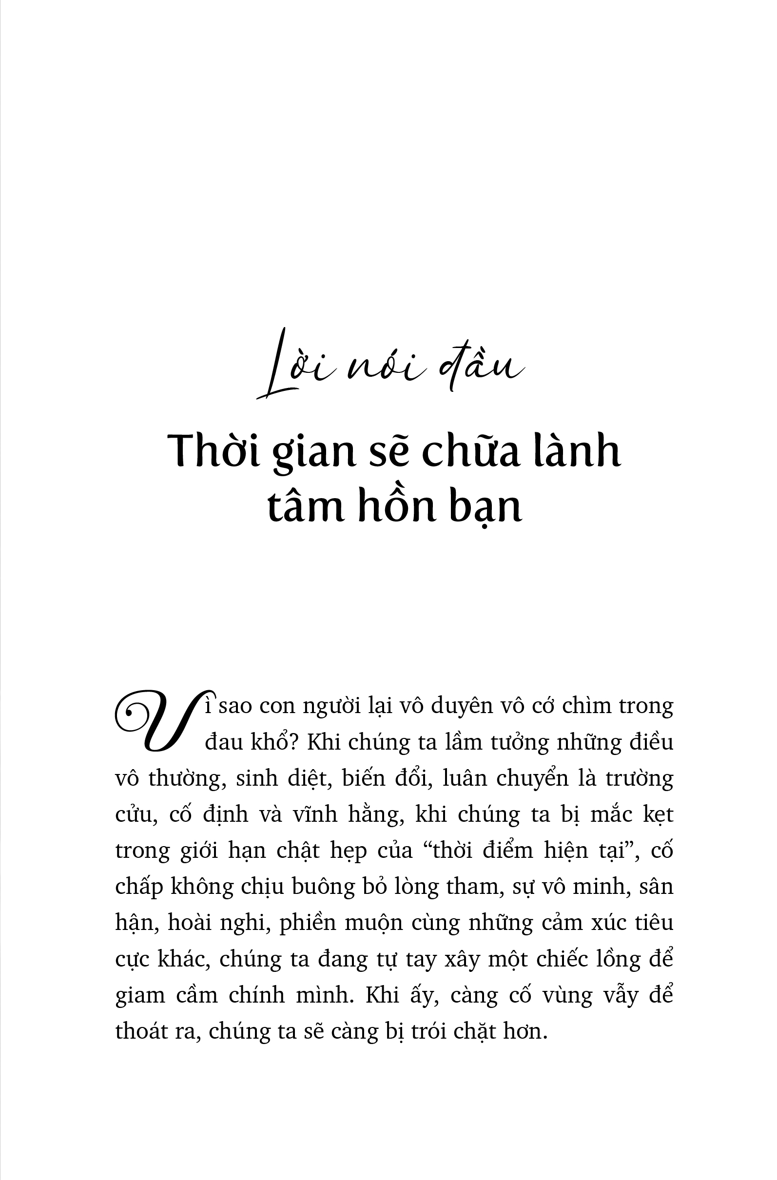 Với bút pháp sâu lắng và triết lý Phật giáo tinh tế, Hiền Tông dẫn dắt độc giả đi qua những góc nhìn mới về khổ đau, nhân quả và sự vô thường. Cuốn sách nhấn mạnh rằng mọi nỗi buồn rồi cũng sẽ qua đi, mọi mất mát rồi cũng sẽ nguôi ngoai, và thời gian chính là phương thuốc hữu hiệu nhất để chữa lành vết thương trong tâm trí con người.