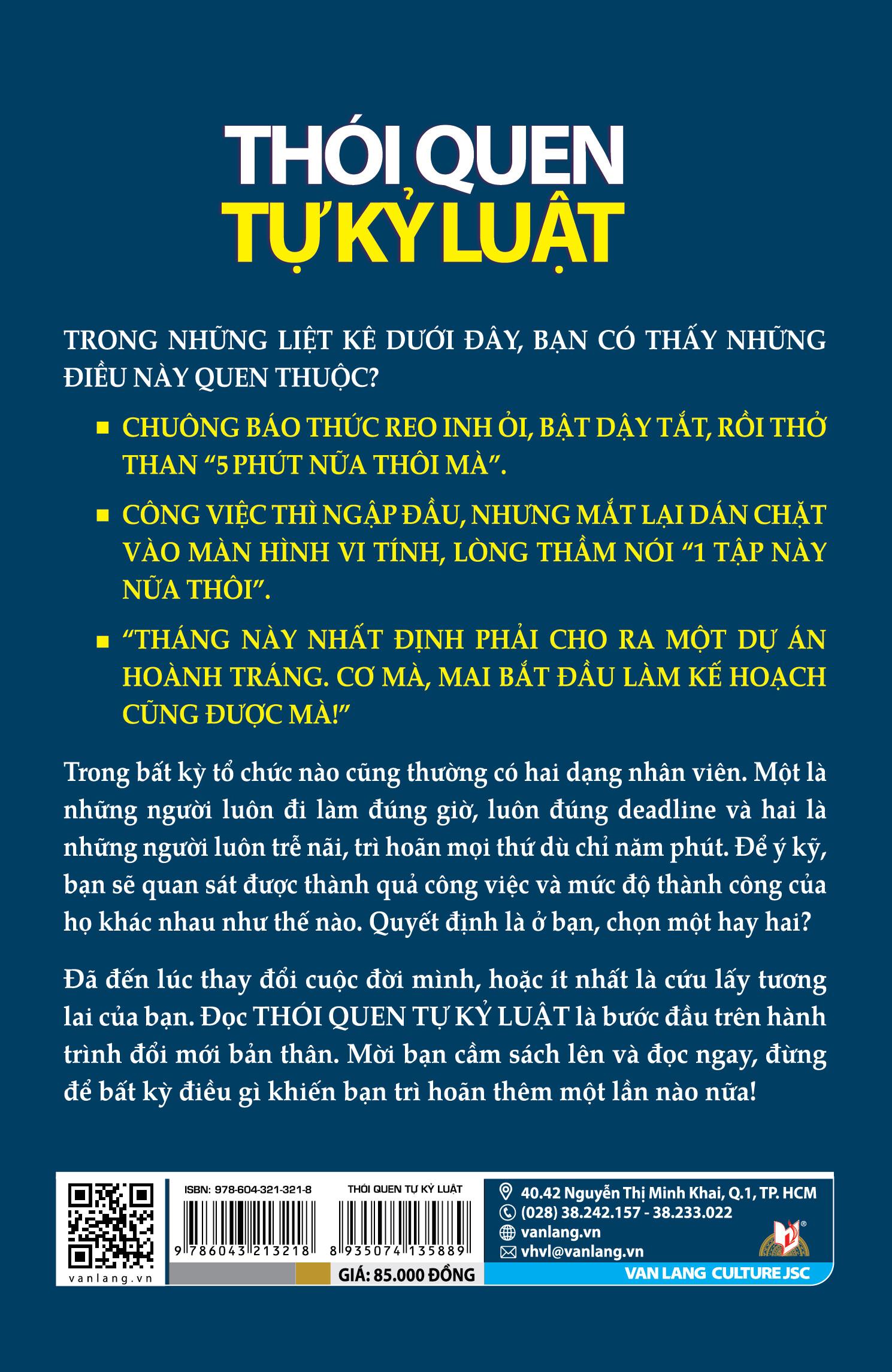 Đã đến lúc thay đổi cuộc đời mình, hoặc ít nhất là cứu lấy tương lai của bạn. Đọc THÓI QUEN TỰ KỶ LUẬT là bước đầu trên hành trình đổi mới bản thân. Mời bạn cầm sách lên và đọc ngay, đừng để bất kỳ điều gì khiến bạn trì hoãn thêm một lần nào nữa!