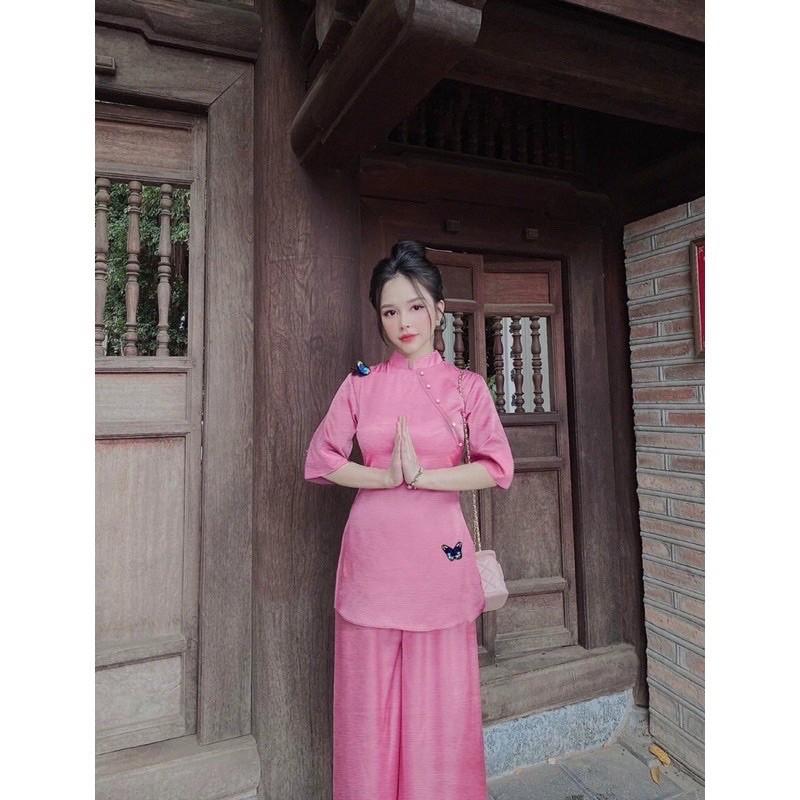 ✨thời trang nữ, lụa cổ tàu đính bướm, đồ đi chùa, đồ lam cao cấp