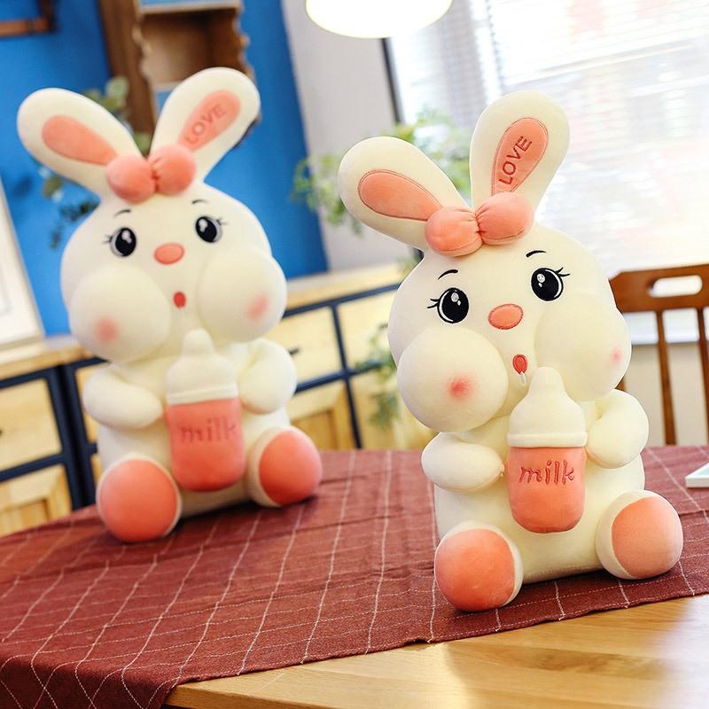 ✨Thú nhồi bông thỏ ôm bình sữa cute - Size 30cm - Màu sắc ngẫu nhiên - Quà tặng gấu bông thỏ ôm bình sữa êm mịn.