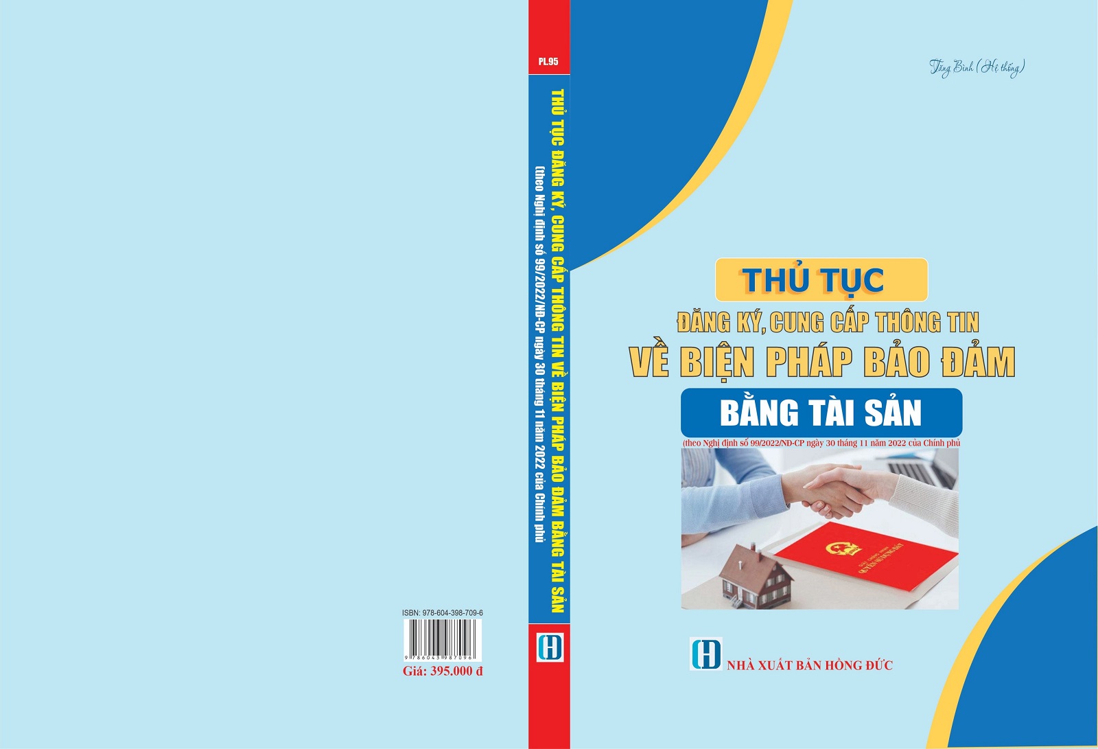 Ngày 30 tháng 11 năm 2022, Chính phủ đã ban hành Nghị định số  99/2022/NĐ-CP về đăng ký biện pháp bảo đảm. Theo đó, các trường hợp đăng ký giao dịch bảo đảm (đăng ký) gồm: Đăng ký thế chấp tài sản, cầm cố tài sản, bảo lưu quyền sở hữu theo quy định; Đăng ký theo thỏa thuận giữa bên bảo đảm và bên nhận bảo đảm hoặc theo yêu cầu của bên nhận bảo đảm, trừ cầm giữ tài sản; Đăng ký thông báo xử lý tài sản bảo đảm trong trường hợp một tài sản dùng bảo đảm thực hiện nhiều nghĩa vụ mà có nhiều bên cùng nhận bảo đảm hoặc trong trường hợp bên bảo đảm và bên nhận bảo đảm có thỏa thuận; Đăng ký thay đổi, xóa đăng ký với các trường hợp trên. Nhằm cung cấp thông tin kịp thời đến với cơ quan, tổ chức, cá nhân tham gia hoặc có liên quan đến đăng ký, cung cấp thông tin về biện pháp bảo đảm, quản lý nhà nước về đăng ký biện pháp bảo đảm và các văn bản liên quan. Nhà xuất bản Hồng Đức xuất bản cuốn sách: