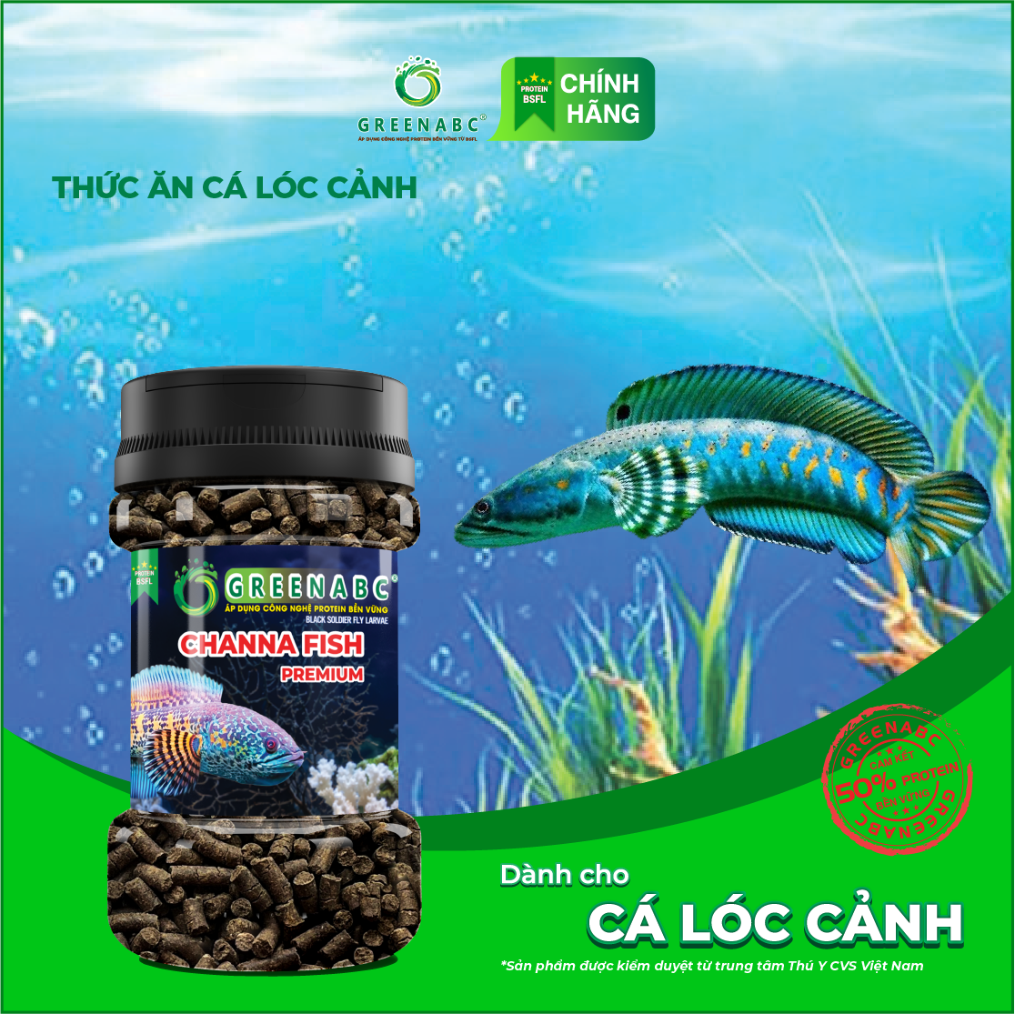 GREENABC - THỨC ĂN CÁ LÓC CẢNH - HÀM LƯỢNG PROTEIN > 40% GREENABC là thức ăn cao cấpdành cho CÁ LÓC CẢNH. Đặc biệt sản phẩm GREENABC được sản xuất theo phương pháp Áp