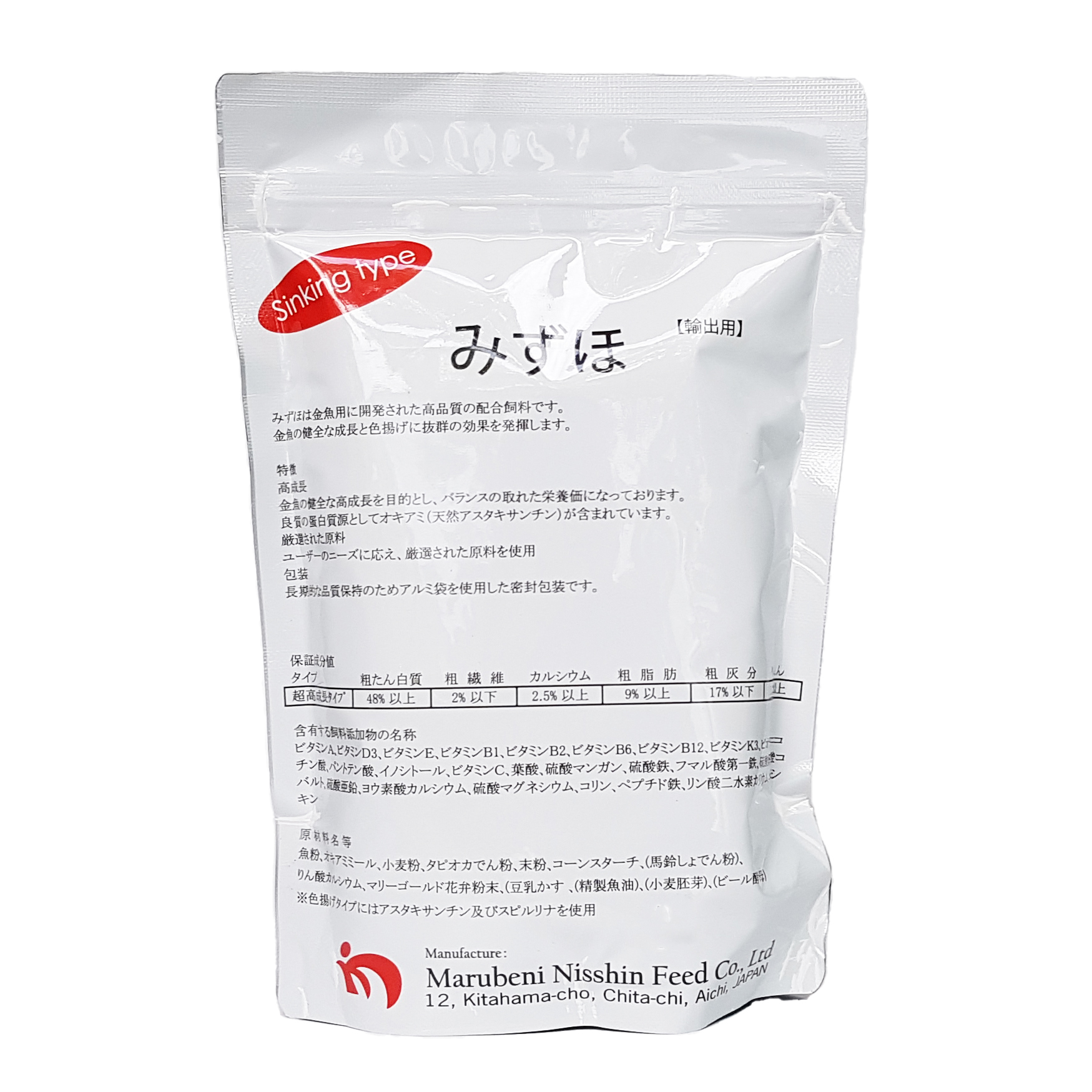 Thức Ăn Cá Vàng Mizuho Goldfish Food là thức ăn hỗn hợp chất lượng cao, do tập đoàn Marubeni Nisshin Nhật Bản sản xuất chuyên cho cá vàng. Thức ăn Mizuho Goldfish Food có hàm lượng chất dinh dưỡng cao, giúp cá vàng tăng trưởng, lên màu và phát triển khỏe mạnh.