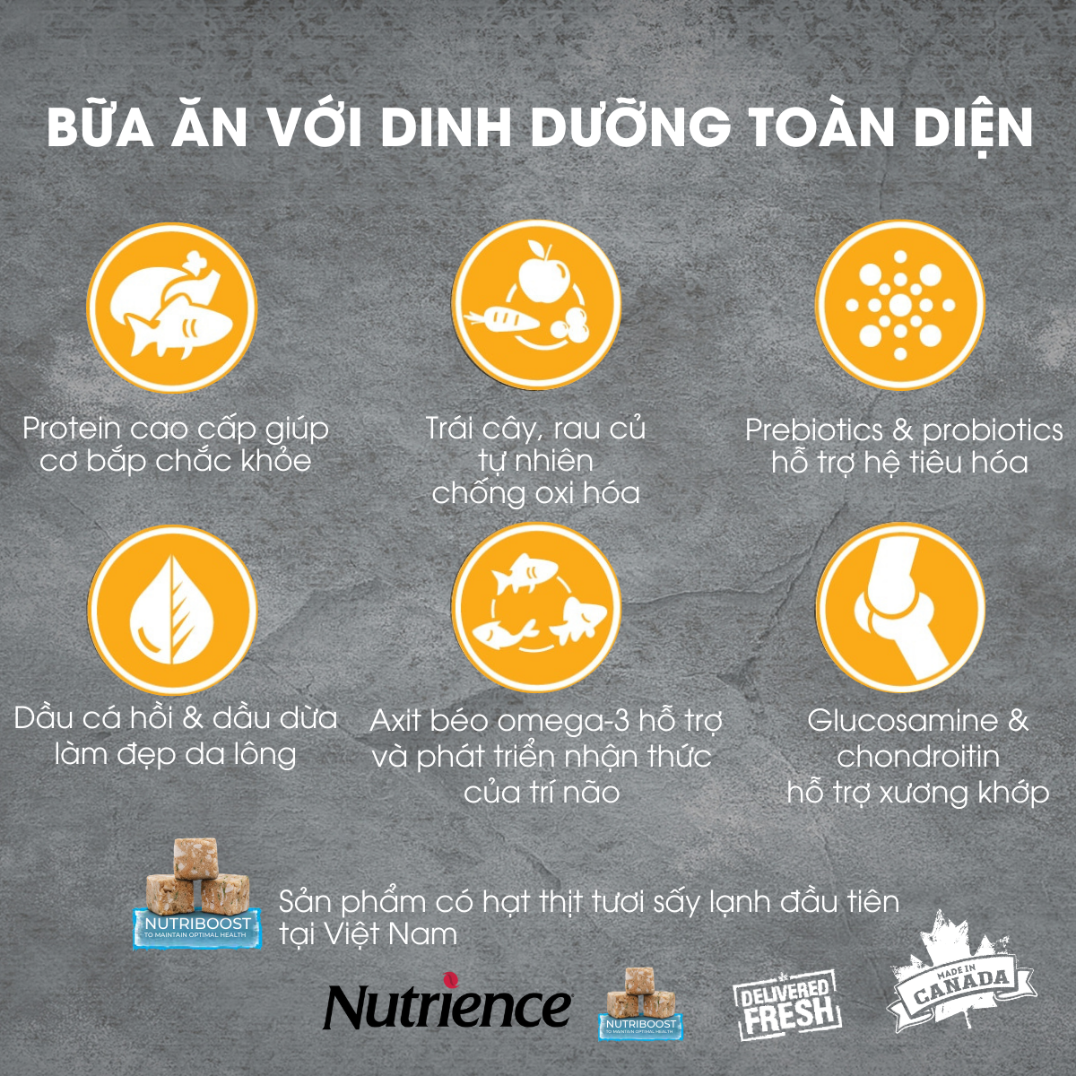 Thức Ăn Tự Nhiên Cho Mèo Nutrience SubZero Thịt Gà Và Cá Hồi là sản phẩm Nutrience Subzero Fraser Valley sử dụng các nguồn nguyên liệu tự nhiên tươi sống của Canada như thịt bò, bò tót bison, heo rừng, cá biển đại dương và hạt thịt gà tươi sấy lạnh sấy lạnh để cho ra hương vị tuyệt hảo có thể khiến cho những chú mèo cưng khó tính nhất cũng phải thèm ăn.