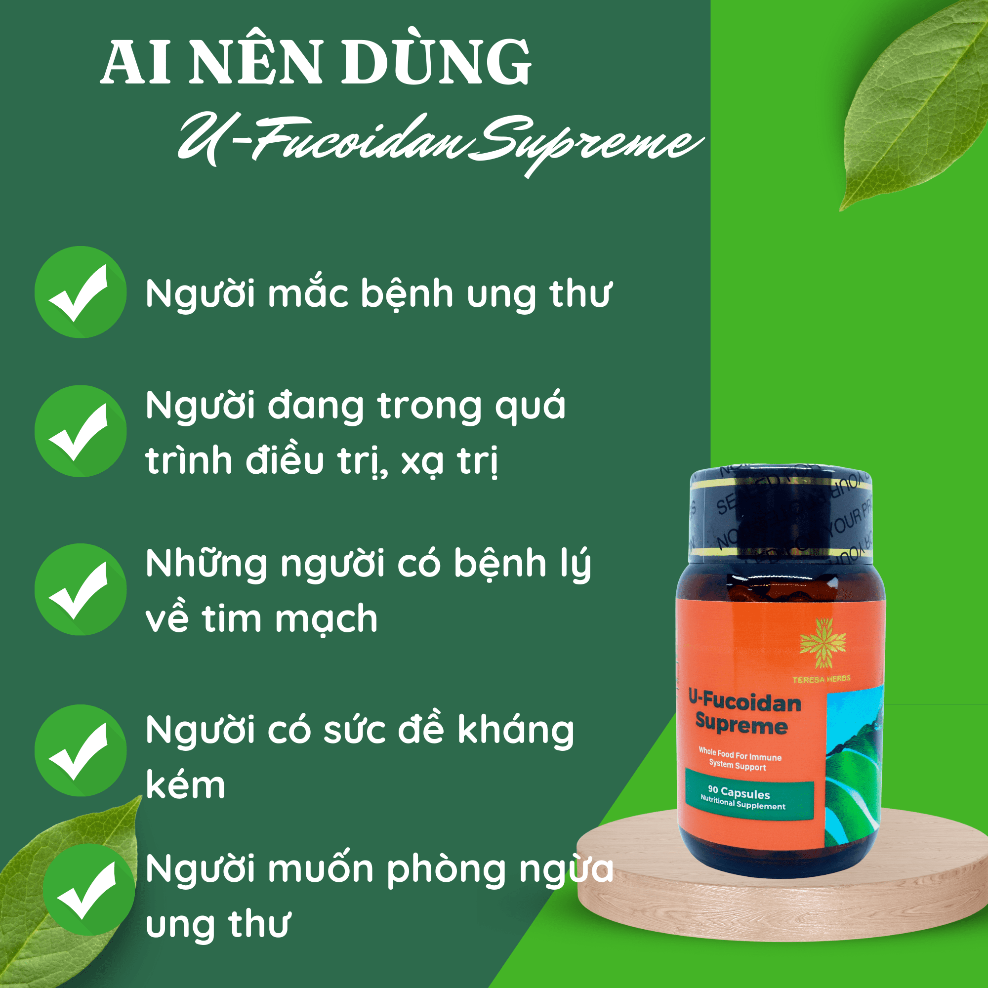 Tên sản phẩm: U-Fucoidan cao cấp Nhật Bản- Teresa Herbs U-Fucoidan Supreme 90 Capsules Nutritional Supplement