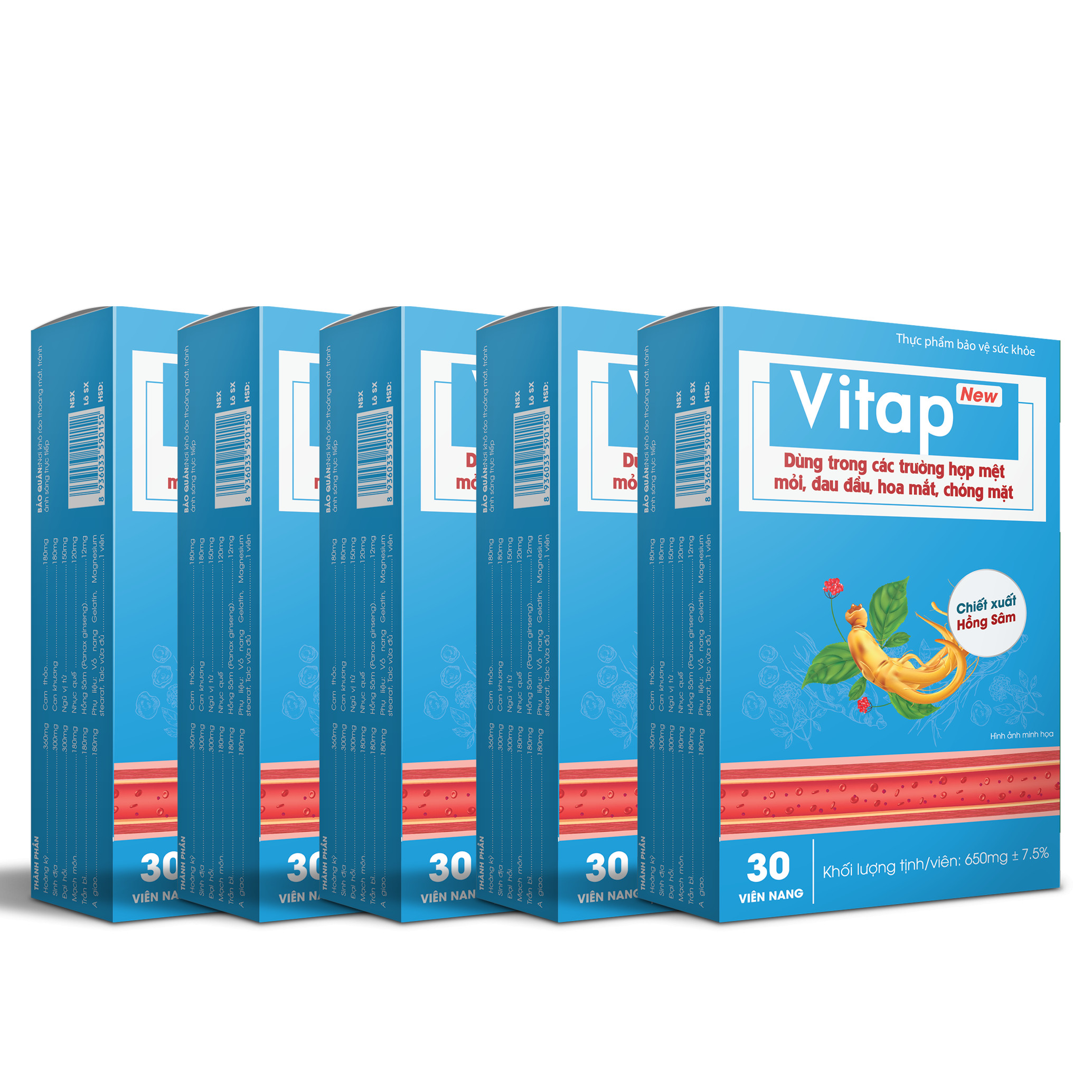 ✨Thực phẩm bảo vệ sức khỏe Vitap New - Dùng Cho Người Huyết Áp Thấp Với Các Biểu Hiện Đau Đầu, Hoa Mắt, Chóng Mặt. Giúp Bổ Khí Huyết, Hoạt Huyết, Hỗ Trợ Làm Giảm Các Biểu Hiện Do Khí Huyết Kém - 5 Hộp