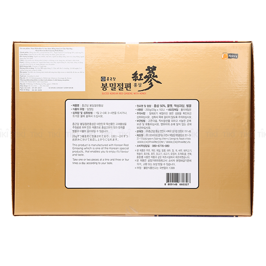 Mua tại Tiktok️️ Hồng Sâm Lát Tẩm Mật Ong Hàn Quốc Ginseng House - Hộp 10 gói - 200g ️️ ️ THÀNH PHẦN: