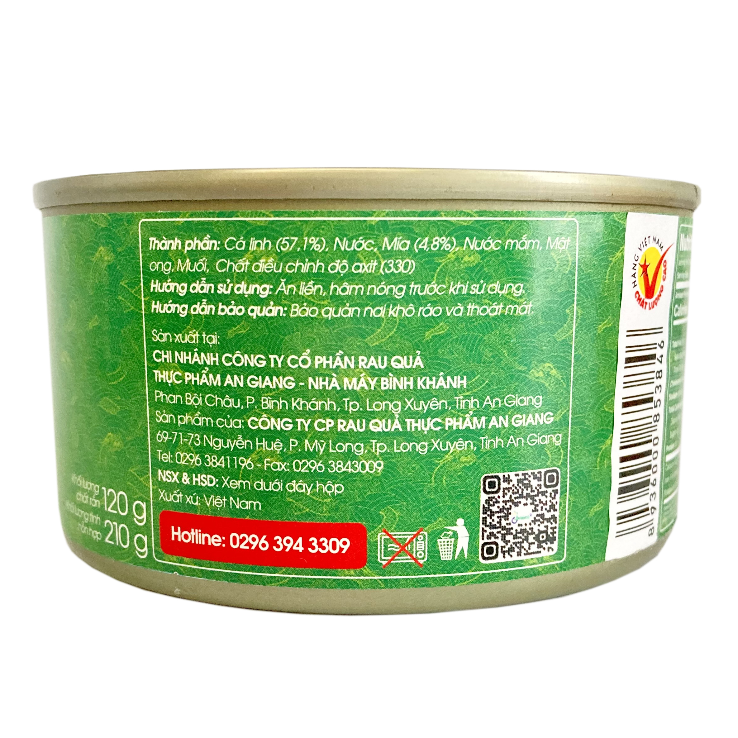 - Nguyên liệu: Cá Linh, nước, mía, nước mắm, mật ong, muối, chất điều chỉnh độ acid (E330)