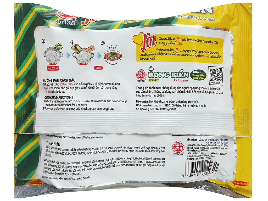 - Mì Jin Ottogi được sản xuất dựa công nghệ hiện đại, không chứa hóa chất, chất bảo quản độc hại, đảm bảo an toàn cho sức khỏe người tiêu dùng.