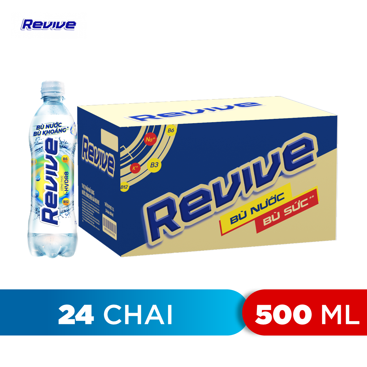 REVIVE - Nước uống điện giải số 1 Việt Nam, với công thức i-Hydr8 độc đáo, ưu việt, bổ sung muối khoáng (Na+, K+) và các vitamin nhóm B (B3, B6, B12), giúp bù nước