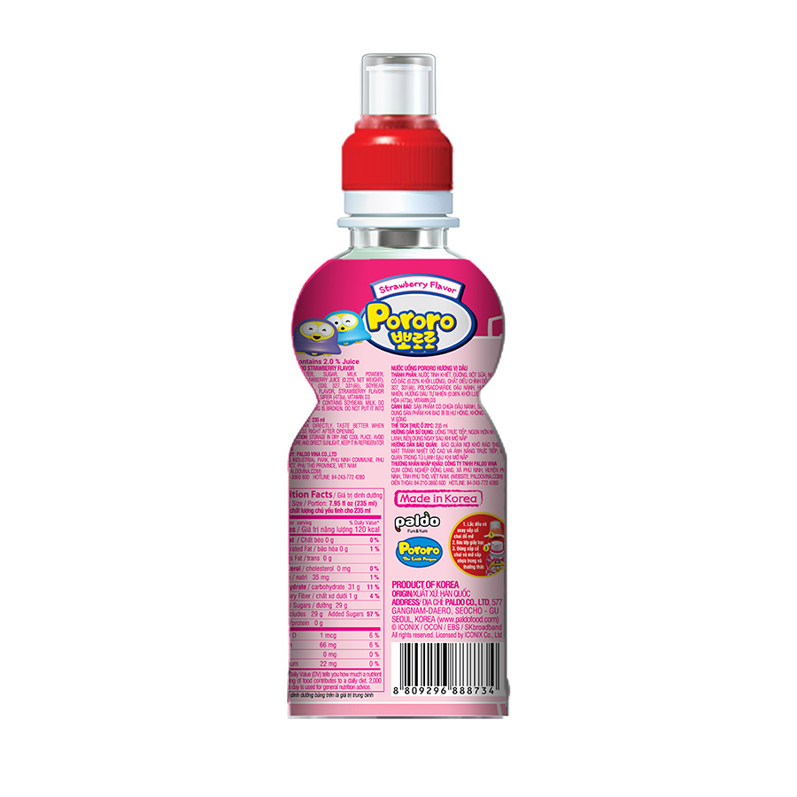 Nước uống Pororo vị dâu chai 235ml
