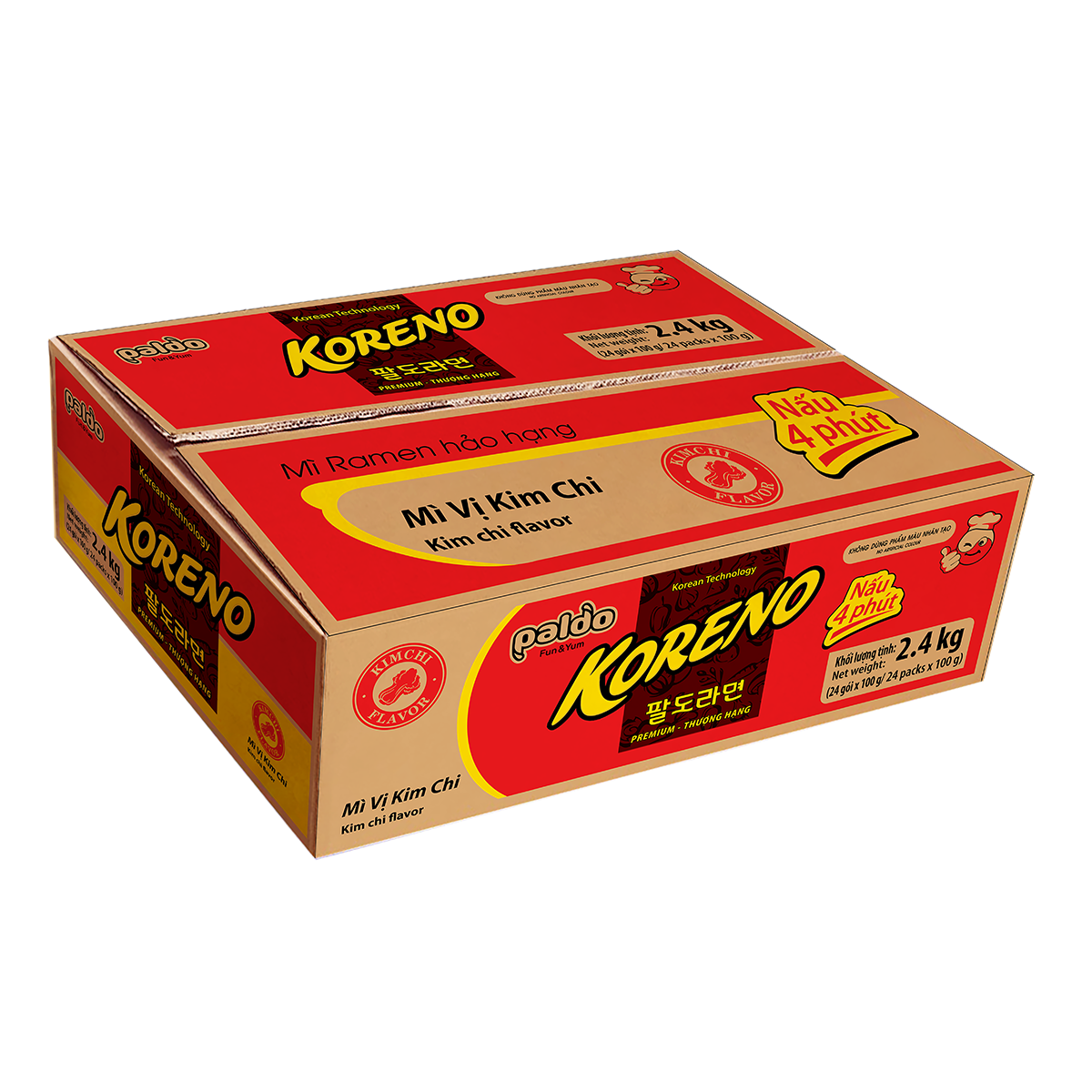 Mì Koreno vị Kim chi là dòng sản phảm thế mạnh của Paldo. Sự tinh tế trong từng gói mì được cải tiến với công nghệ Hàn Quốc, đem đến độ dai giòn bóng bẩy, hòa quyện với nước dùng đặc trưng, tạo nên hương vị, mùi thơm tinh tế, quyến rũ.