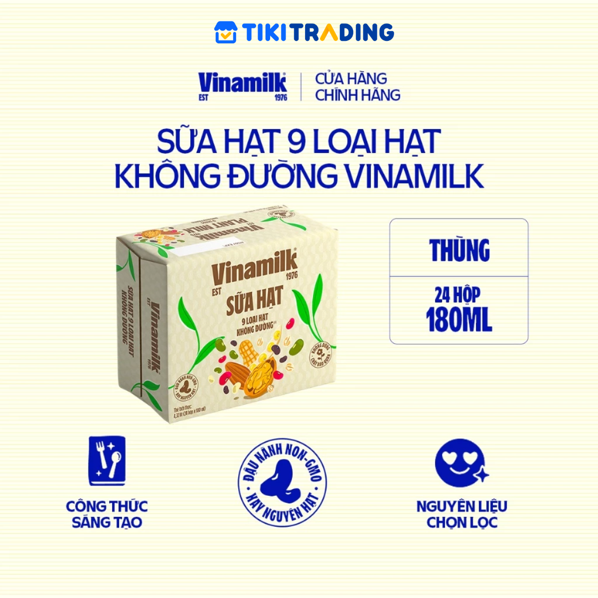Sữa 9 loại hạt Vinamilk không đường - Thùng 24 hộp 180ml