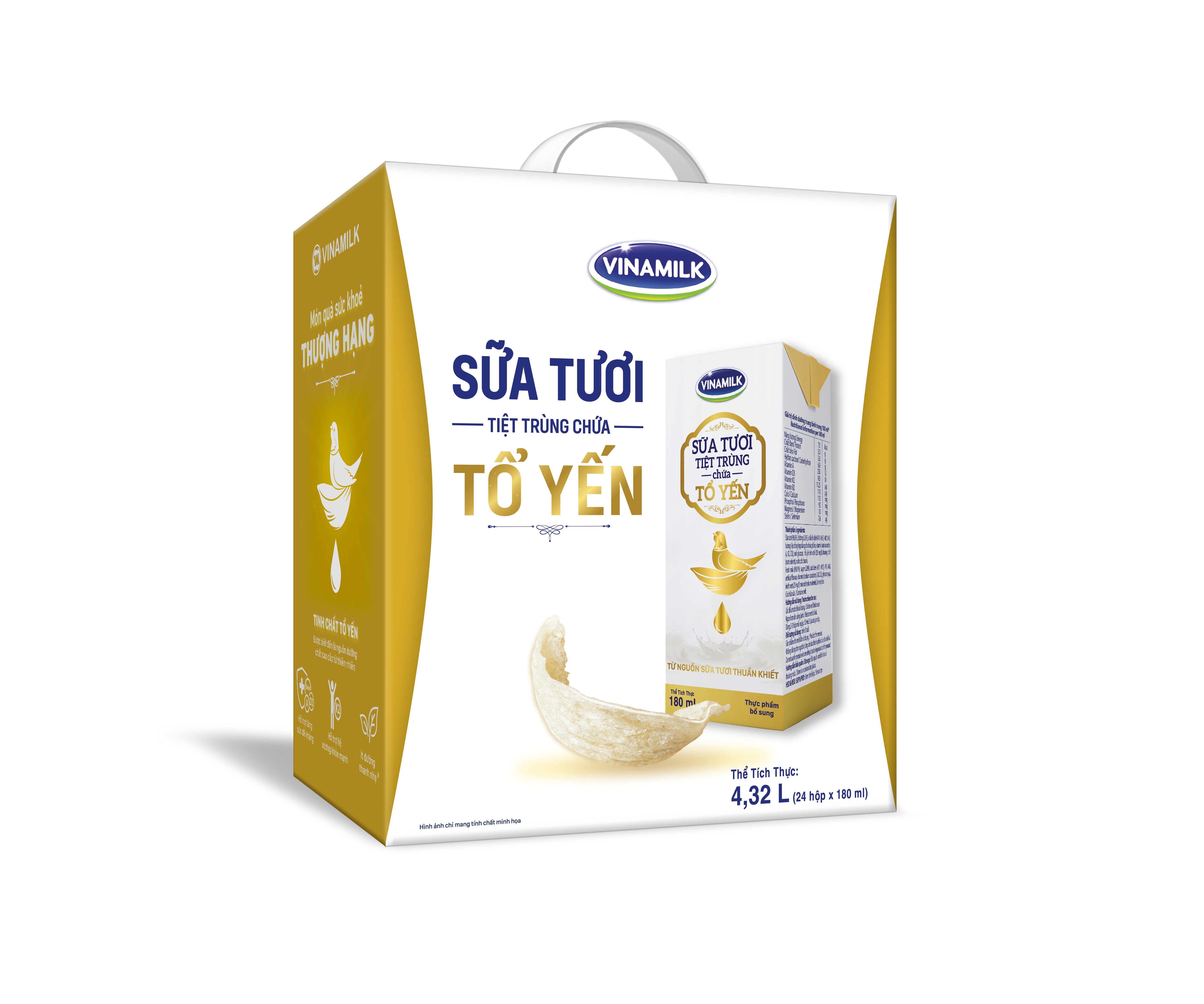 - Vitamin A, D3 & Selen hỗ trợ miễn dịch, tăng cường sức đề kháng. Đây là sản phẩm sữa tươi tiệt trùng có chứa tổ yến cực kỳ bổ dưỡng và thơm ngon. Lốc 4 hộp sữa tươi tiệt trùng chứa tổ yến Vinamilk 180ml là món quà cho sức khoẻ mà Vinamilk dành tặng cho khách hàng, có thể đem biếu, tặng vì bao bì cực sang trọng, giàu dinh dưỡng và thơm ngon