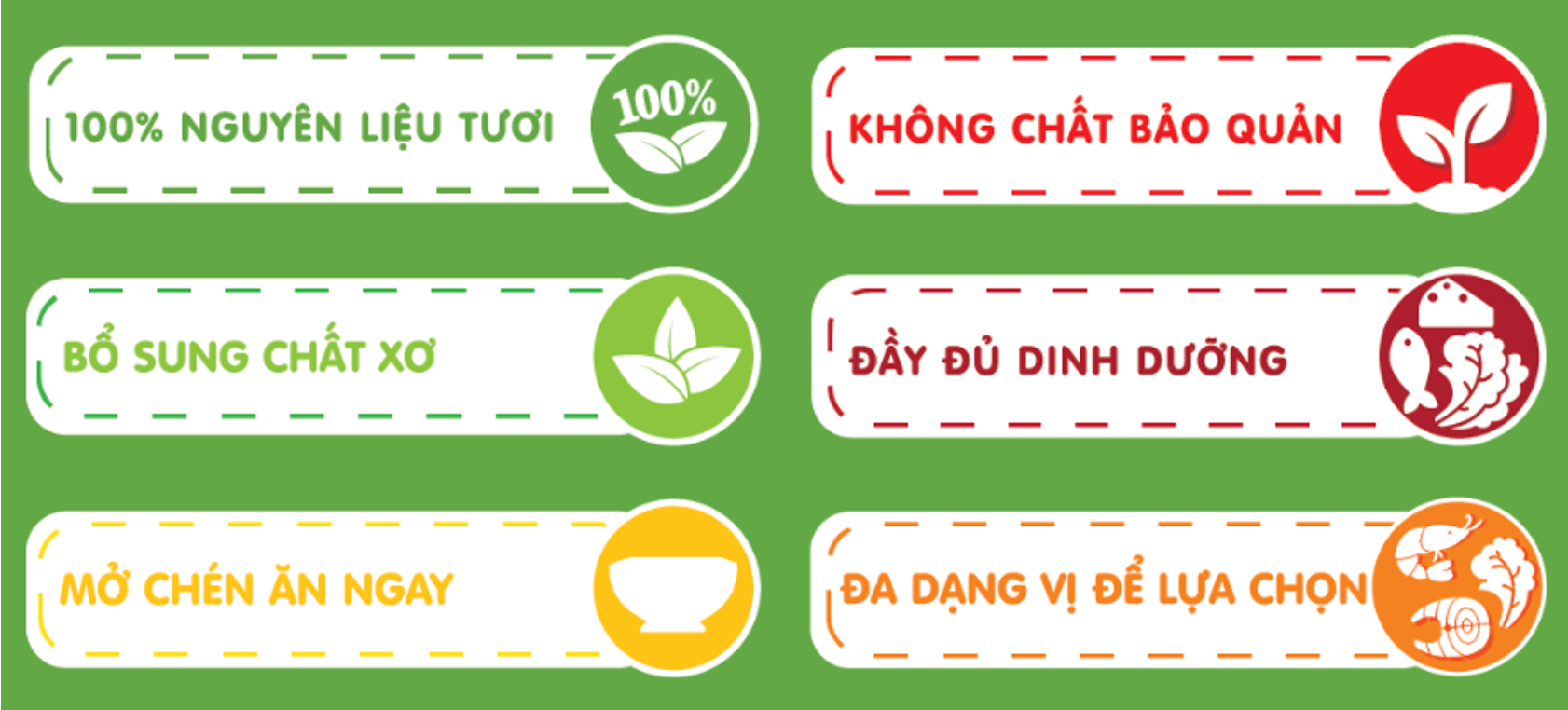 Không chất bảo quản nhờ bao bì đa lớp chuyên dụng kết hợp Công nghệ Nhật Bản nấu chín trực tiếp nguyên liệu trong bao bì.