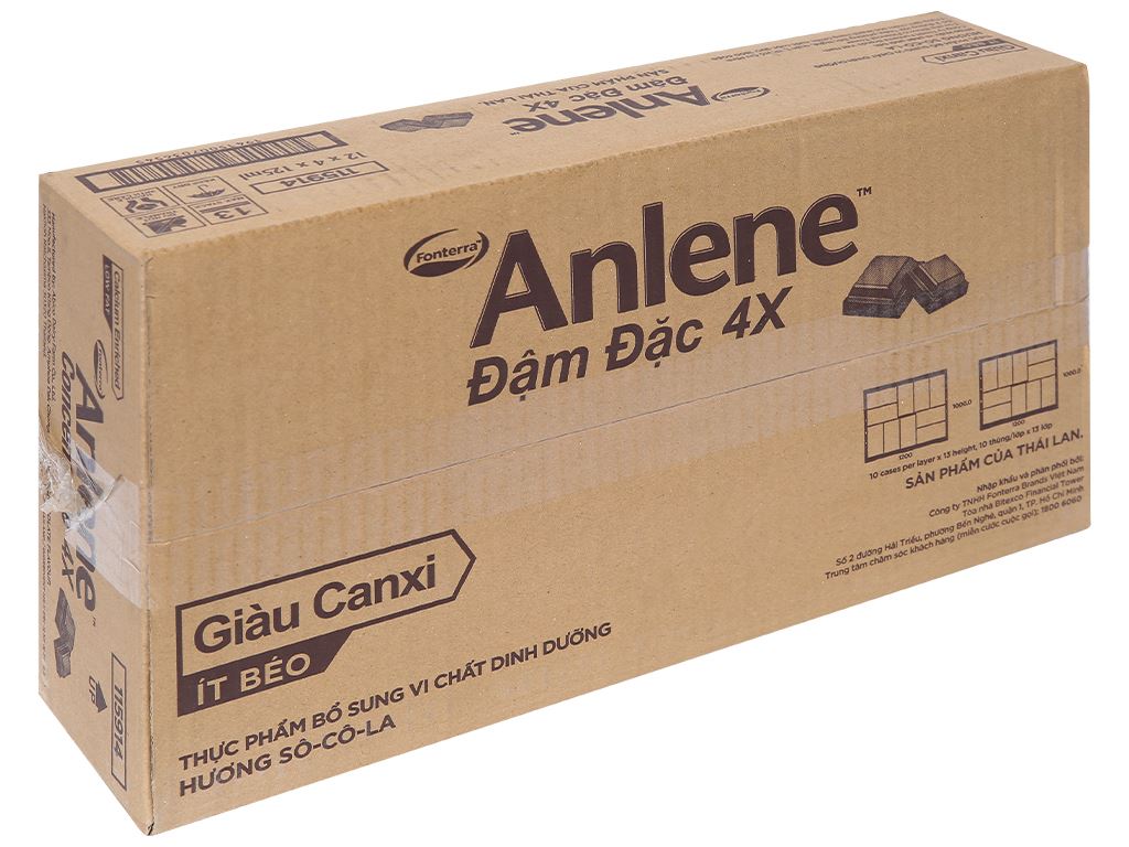 - Thùng 48 Hộp Sữa Anlene Đậm Đặc 4X Ít Béo Hương Sô-Cô-La cung cấp các dưỡng chất như: chất đạm sữa chất lượng cao, có chứa các acid amin thiết yếu, các khoáng chất như Canxi, Phốt Pho, Magie, Kẽm, các vitamin như A, C, D3 và các vitamin nhóm B.