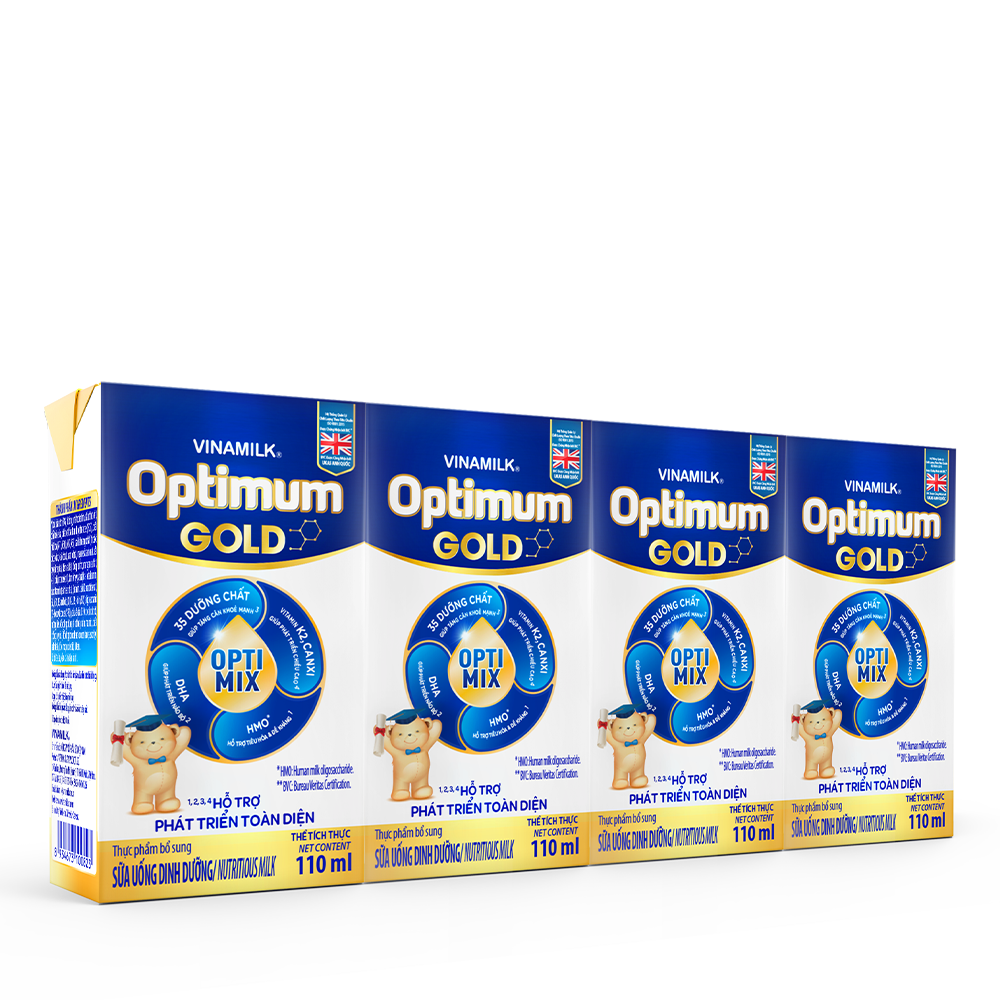 Thùng 48 Hộp Sữa Bột Pha Sẵn Vinamilk Optimum Gold 180ml Optimum Gold mới, chất lượng được công nhận bởi UKAS - Anh Quốc, với công thức để hấp thu này được bổ sung thêm