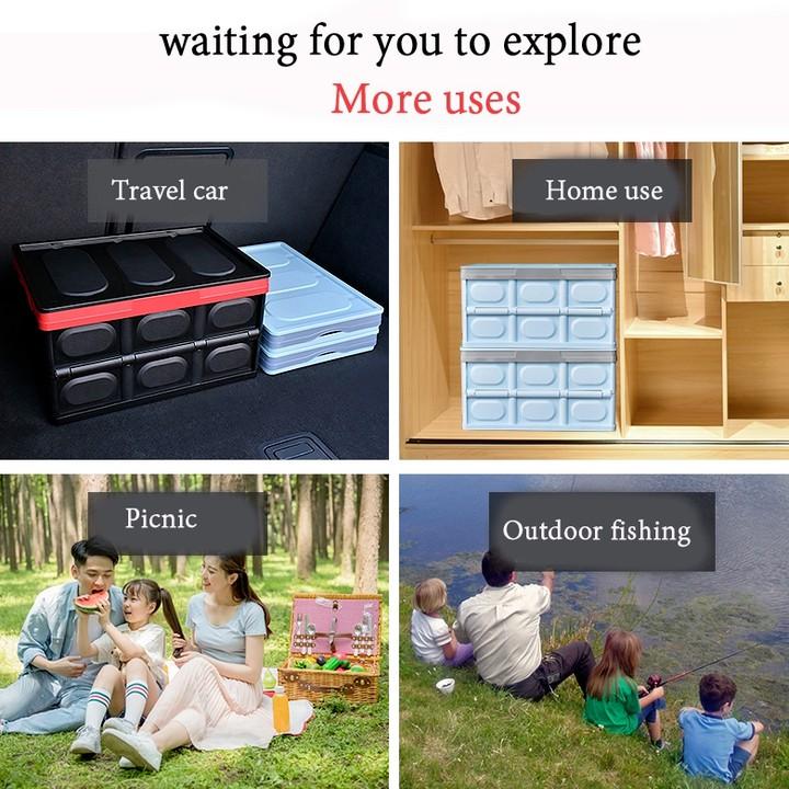 Thùng để đồ cốp sau ô tô sử dụng khi đi du lịch, dã ngoại ngoài trời, đi câu cá, cắm trại SỬ DỤNG ĐA NĂNG - DU LỊCH DÃ NGOẠI Du lịch , dã ngoại với hành trình trên mỗi chuyến đi luôn cần mang theo rất nhiều đồ dùng đi kèm, để xếp gọn mọi thứ ngăn nắp là không đơn giản. Thùng đựng đồ cốp sau ô tô giúp bạn xếp gọn mọi thứ cho một chuyến đi dài mà không cần nhiều không gian bên trong xe. Sản phẩm thiết kế thông có thể gấp gọn khi không sử dụng. Với thể tích cỡ lớn, thùng để đồ cốp sau ô tô có thể để được đồ ăn, thức uống cùng nhiều vật dụng cùng một lúc giúp chuyến đi của bạn trở nên hoàn hảo và thú vị hơn. TẶNG KÈM TÚI LÓT CHỨA NƯỚC BÊN TRONG Với túi lót chống thấm nước bên trong, Thùng đựng đồ cốp sau ô tô có thể dùng làm dùng chứa cá cho các bạn đi cắm trại câu cá. Sản phẩm đa năng, sử dụng tiện lợi với thể tích 33l và 56l tùy vào nhu cầu sử dụng trong mỗi chuyến đi của bạn.