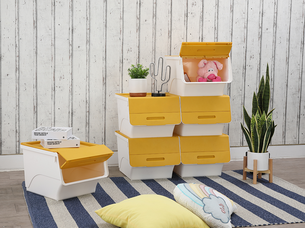 - Tính năng có thể xếp chồng lên nhau để tiết kiệm không gian, nắp có thể gặp lại, đảm bảo yếu tố riêng tư cũng như an toàn cho sản phẩm lưu trữ trong thùng.