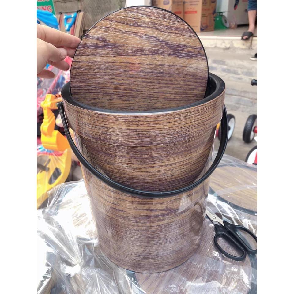 ✨Thùng rác nắp lật vân gỗ nhựa Việt Nhật 8036