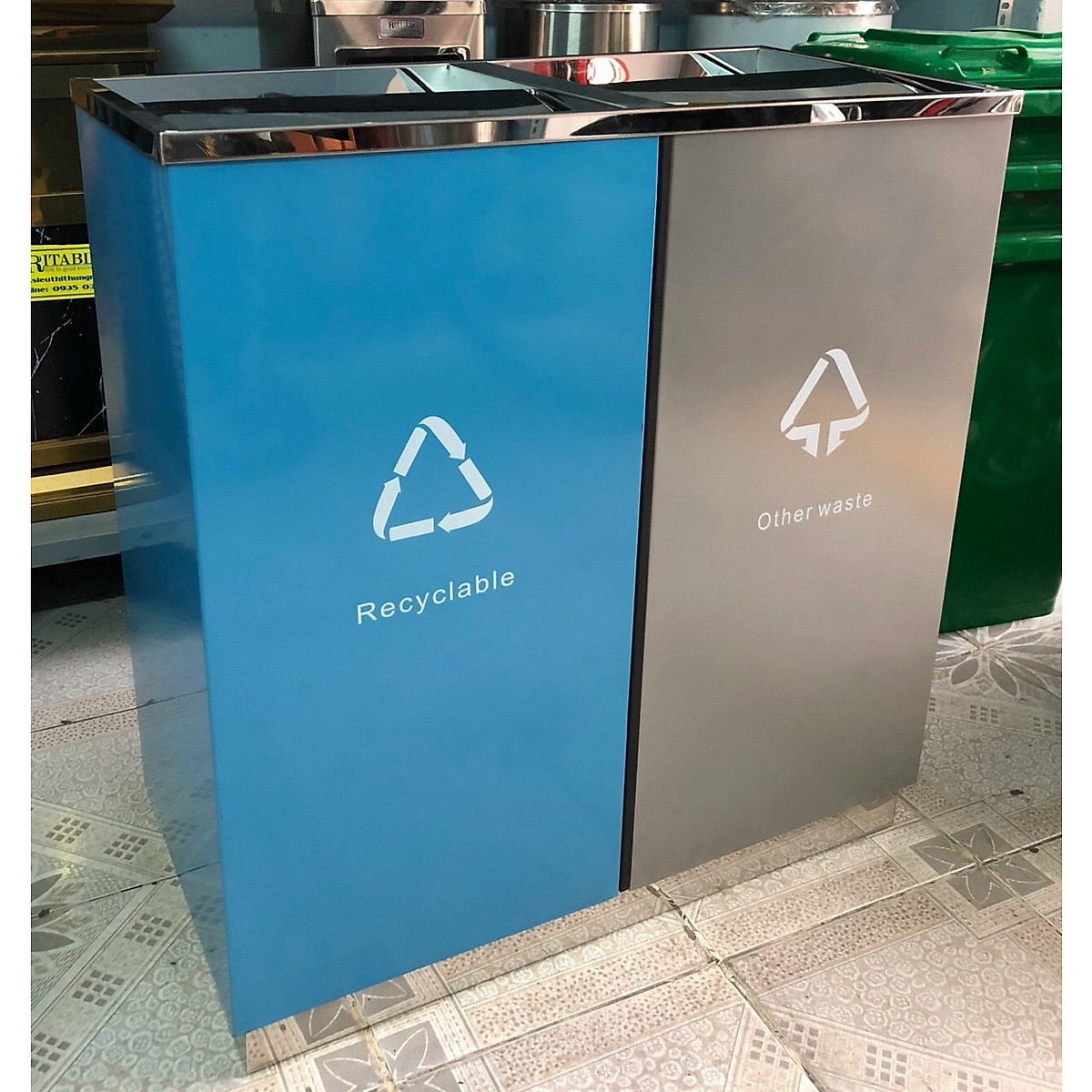 Có hai ngăn dùng để phân loại rác đồng thời có mái che để tránh nước mưa Thùng rác công cộng được làm bằng thép phun sơn tĩnh điện với màu sắc trang nhã, thân thiện. Sản phẩm sáng bóng, bền đẹp, với thiết kế thùng kín không làm rác bị bay mùi ra môi trường xung quanh, đảm bảo vệ sinh và thân thiện với môi trường. Biểu tượng được in trên thùng rác rất đẹp mang thương hiệu cũng như hướng dẫn mọi người nên bỏ rác vào thùng.