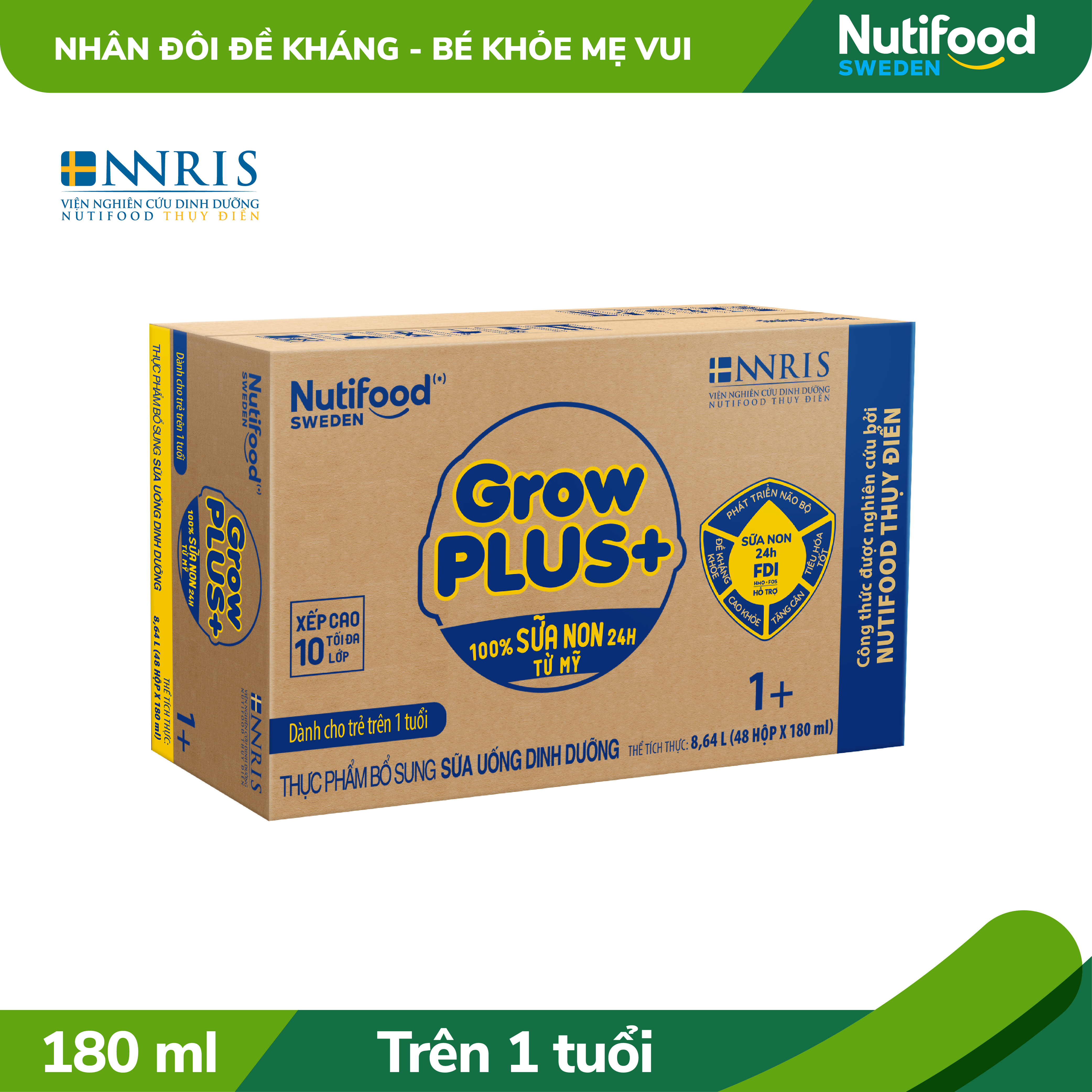 ✨Thùng sữa bột pha sẵn Nutifood GrowPLUS+ Sữa Non Tăng Đề Kháng 1+ (48 hộp x 180ml)