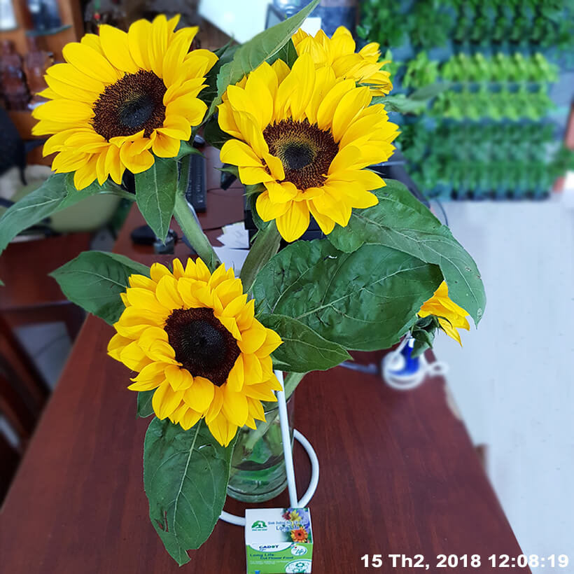 • Hoa cắm bình có dùng gói dưỡng hoa tươi lâu Long Life sẽ tươi lâu hơn gấp 2 đến 3 lần và lá hoa luôn xanh cứng