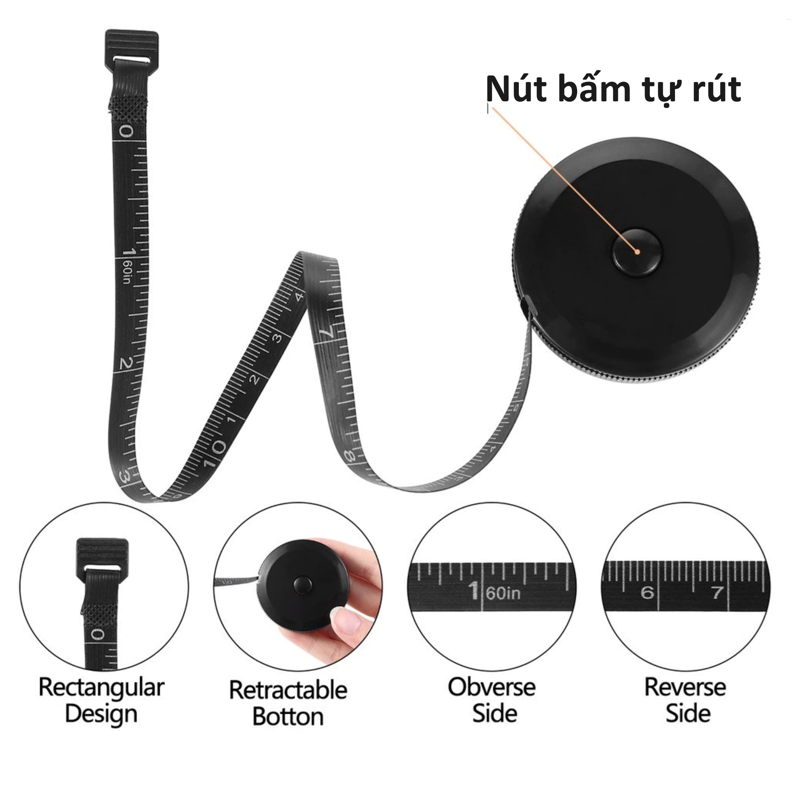Thước Dây Với Nút Bấm Tự Rút Sau Khi Kéo, Đo Vòng Bụng, Vòng Eo 3 Vòng Kiểm Tra Sức Khỏe 1.5m - Đo Quần Áo.