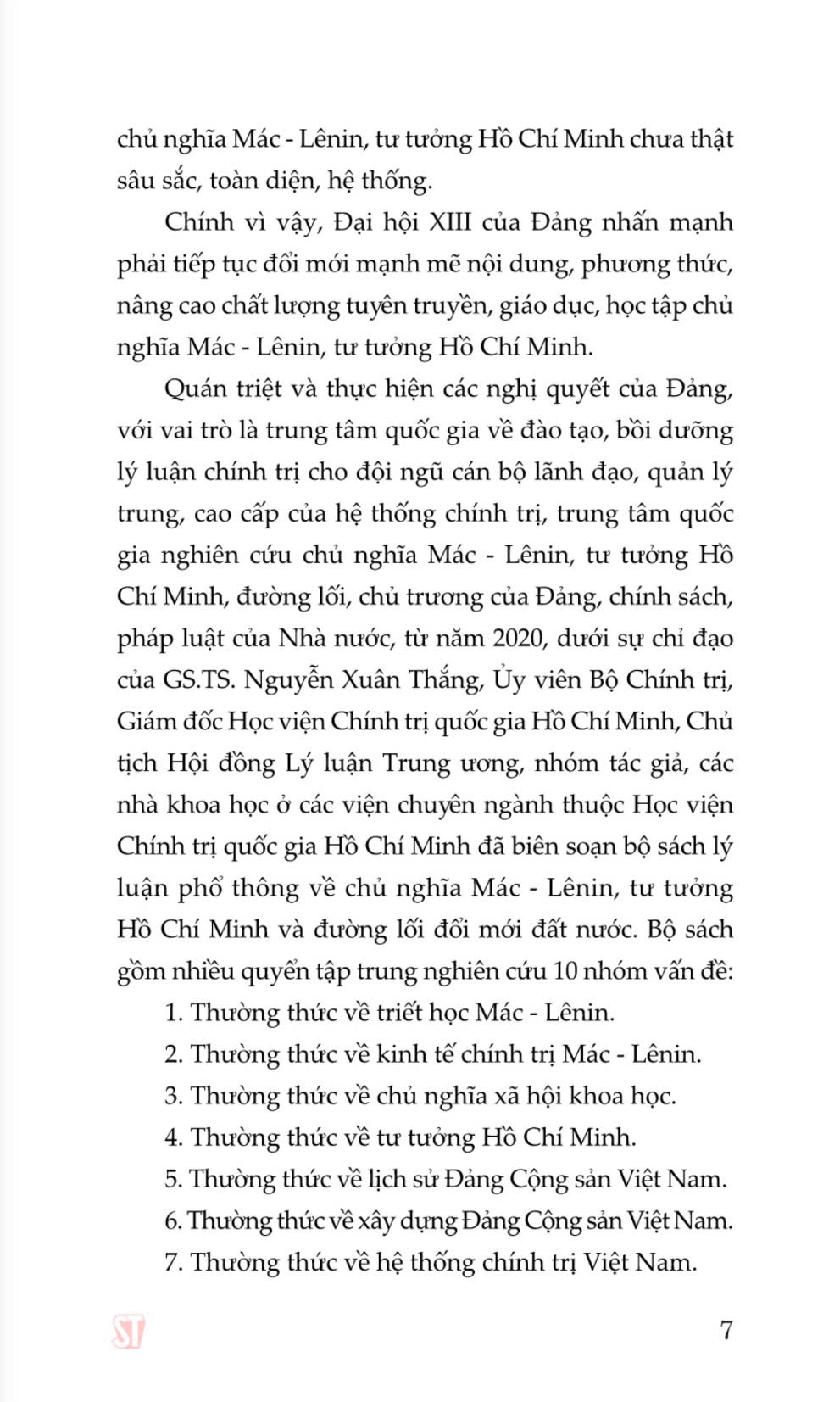 Bộ giáo trình lý luận chính trị gồm 5 cuốn dành cho bậc đại học hệ không chuyên lý luận chính trị. Bộ sách là tài liệu giảng dạy, học tập cho giảng viên, sinh