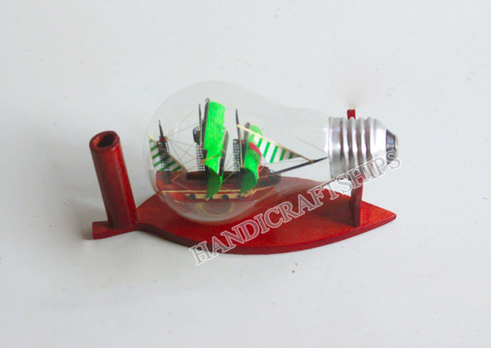 ✨Thuyền buồm bằng gỗ trong bóng đèn (thuyền Galleon xanh lá)