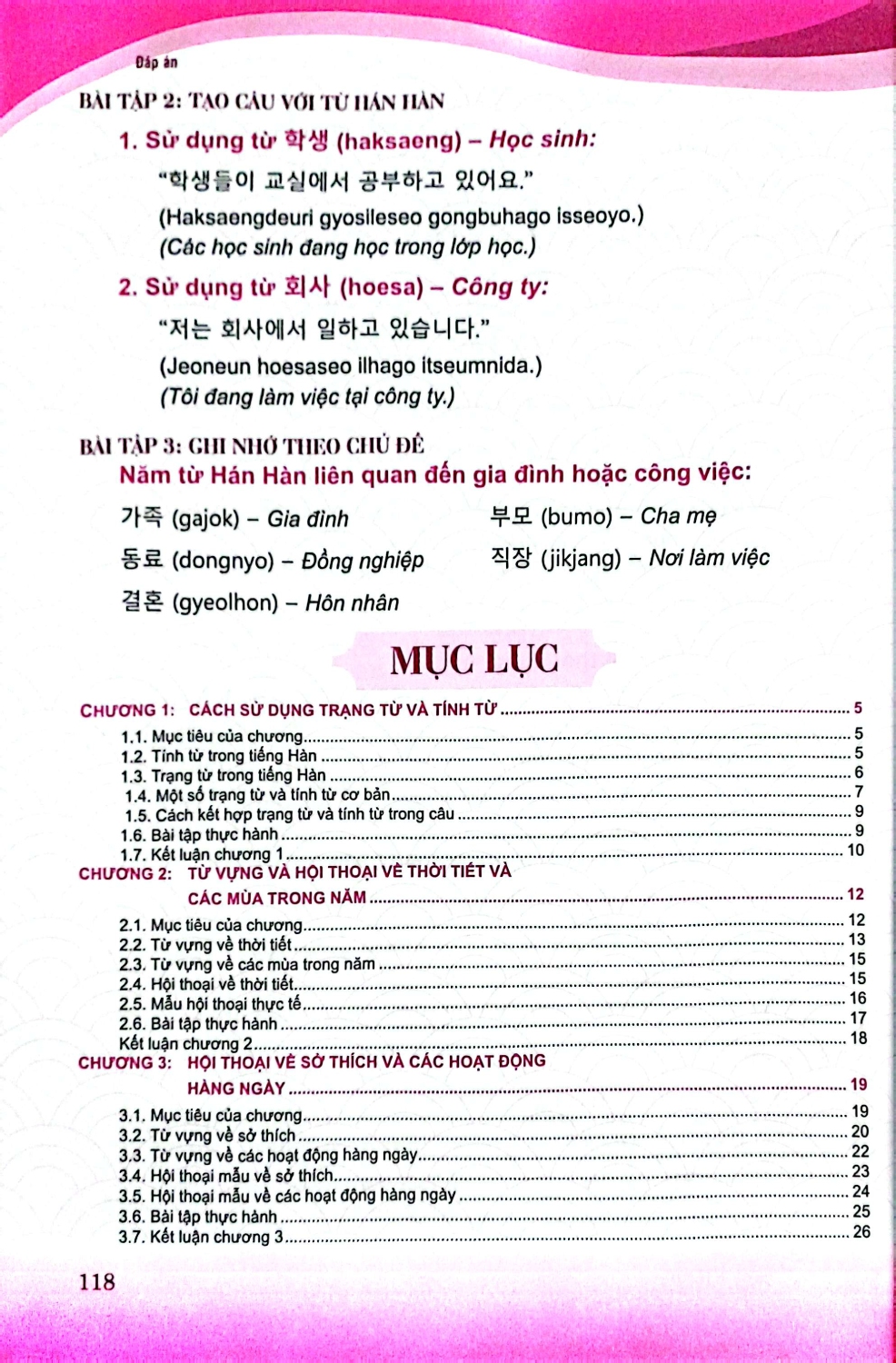 Nội dung sách bao gồm các bài học về ngữ pháp, từ vựng và các mẫu hội thoại thực tế. Từng chương được xây dựng để bạn dần nắm vững các chủ điểm quan trọng như cách sử dụng câu phức, câu điều kiện, kính ngữ, và cách biểu đạt cảm xúc, suy nghĩ trong nhiều bối cảnh khác nhau. Bên cạnh đó, bạn sẽ được tiếp cận với các chủ đề phong phú về văn hóa Hàn Quốc, từ phong tục tập quán, lối sống, cho đến các giá trị truyền thống và hiện đại. Những kiến thức này không chỉ giúp bạn hiểu sâu hơn về ngôn ngữ mà còn kết nối với văn hóa và con người Hàn Quốc một cách chân thực hơn.