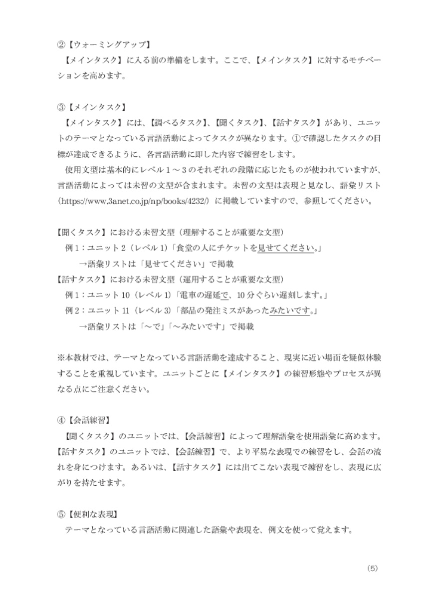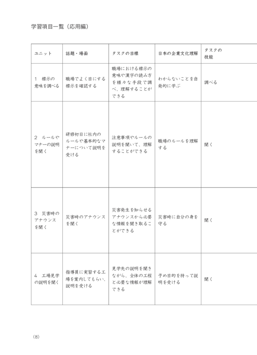 Giáo trình giúp học viên biết cách sử dụng tiếng Nhật chính xác trong các tình huống và bối cảnh thường gặp trong thực tế tại các công ty, nhà máy ở Nhật Bản. Ngoài ra, học viên cũng phát triển dần kỹ năng đặt vấn đề nghi vấn "tại sao", "như thế nào" đối với các tình huống, bối cảnh được đặt ra trong giáo trình, qua đó nắm bắt sâu sắc hơn về văn hóa doanh nghiệp Nhật Bản.