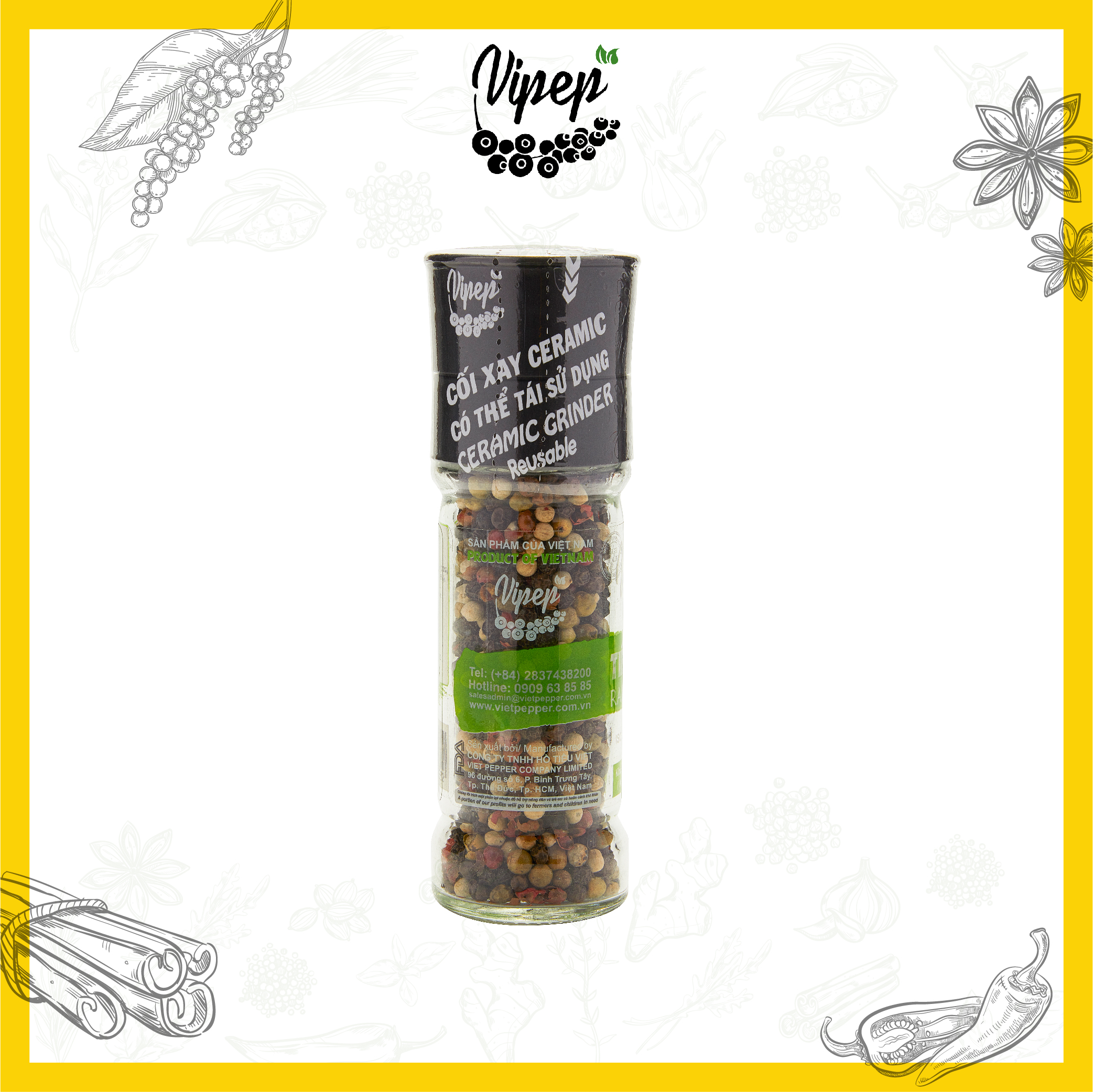 ✨Tiêu Ngũ Sắc Hạt Tự Nhiên Cối Xay Vipep Hũ Thủy Tinh 45g