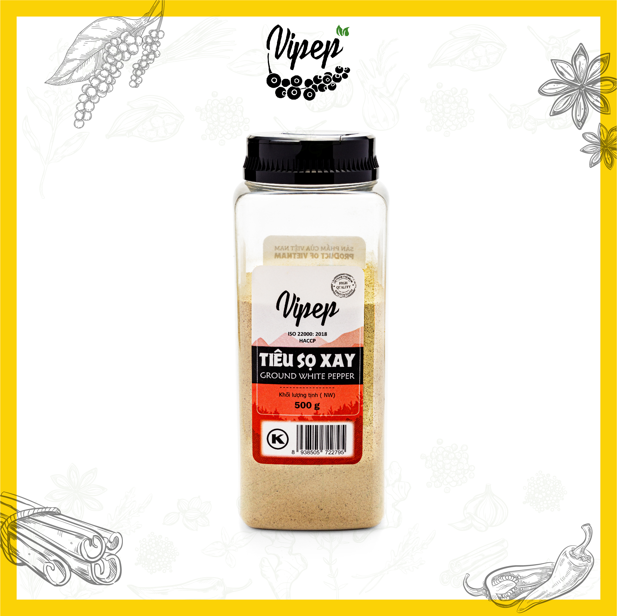 ✨Tiêu Sọ Xay Tự Nhiên Vipep Hũ Nhựa 500g, tiêu cay, thơm - Gia vị Vipep