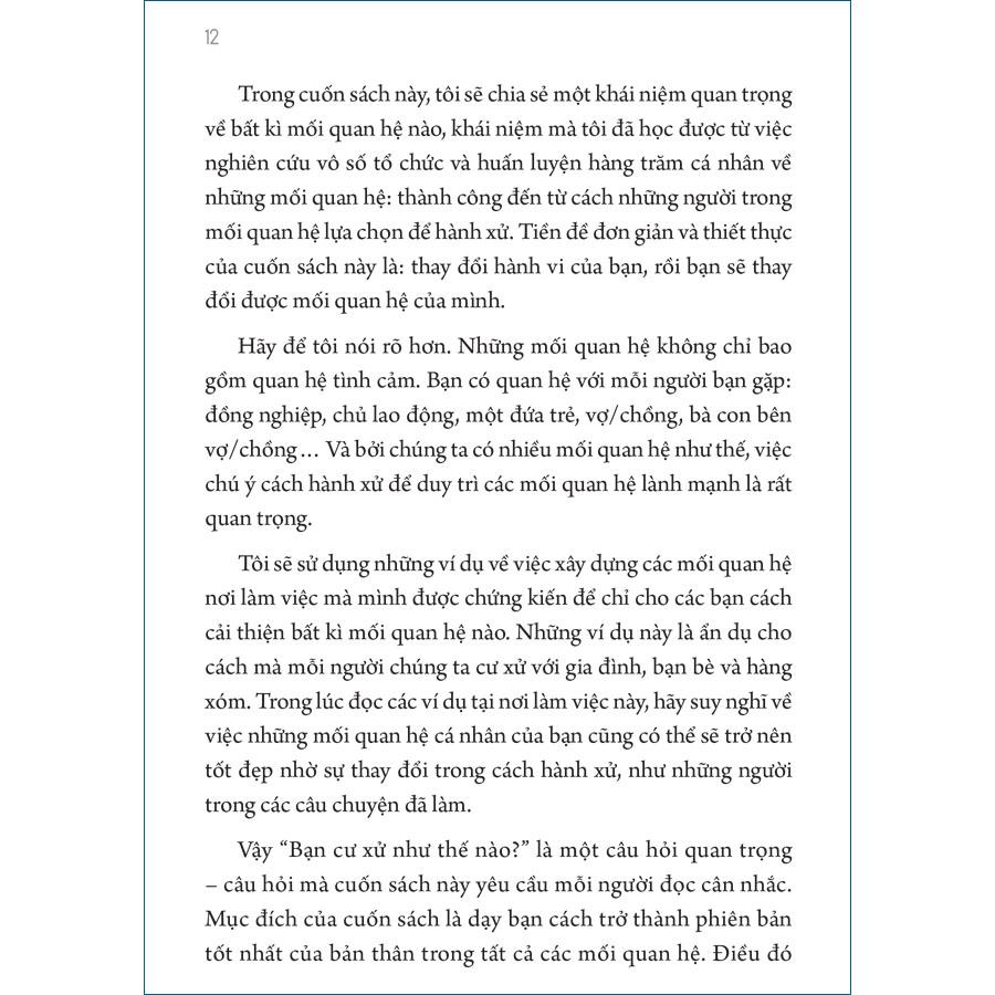 Chìa khóa duy nhất để cải thiện những mối quan hệ là học cách biến chúng thành một mối quan hệ có chủ ý. Mối quan hệ có chủ ý là sử dụng một cách tích cực cá tính, các cuôc đối thoại, sự thấu hiểu, quan điểm và sức ảnh hưởng để xây dựng và duy trì mối liên kết với những người xung quanh. Mối quan hệ của bạn đều do bạn tạo nên.