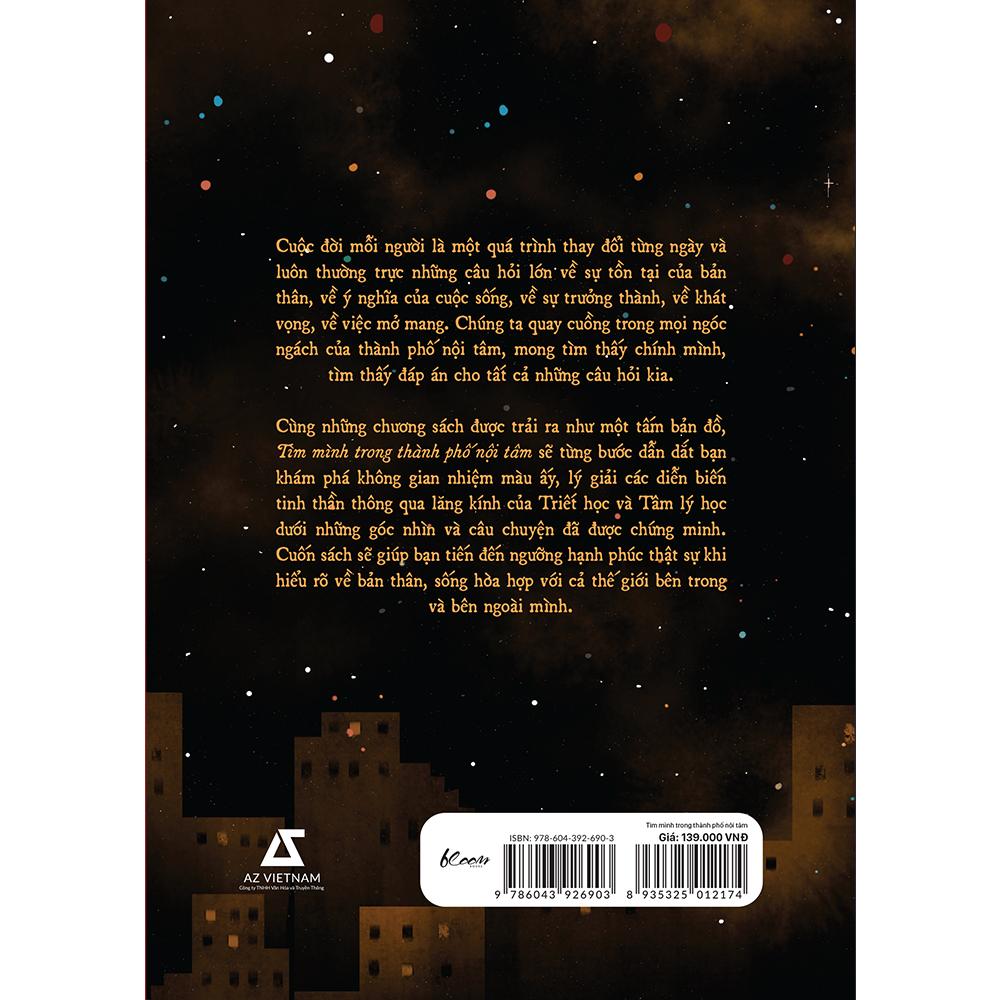 Cùng những chương sách được trải ra như một tấm bản đồ, Tìm mình trong thành phố nội tâm sẽ từng bước dẫn dắt bạn khám phá không gian nhiệm màu ấy, lý giải các diễn biến tinh thần thông qua lăng kính của Triết học và Tâm lý học cùng những góc nhìn và câu chuyện đã được chứng minh. Cuốn sách sẽ giúp bạn tiến đến ngưỡng hạnh phúc thật sự khi hiểu rõ về bản thân, sống hòa hợp được với cả thế giới bên trong và bên ngoài mình.