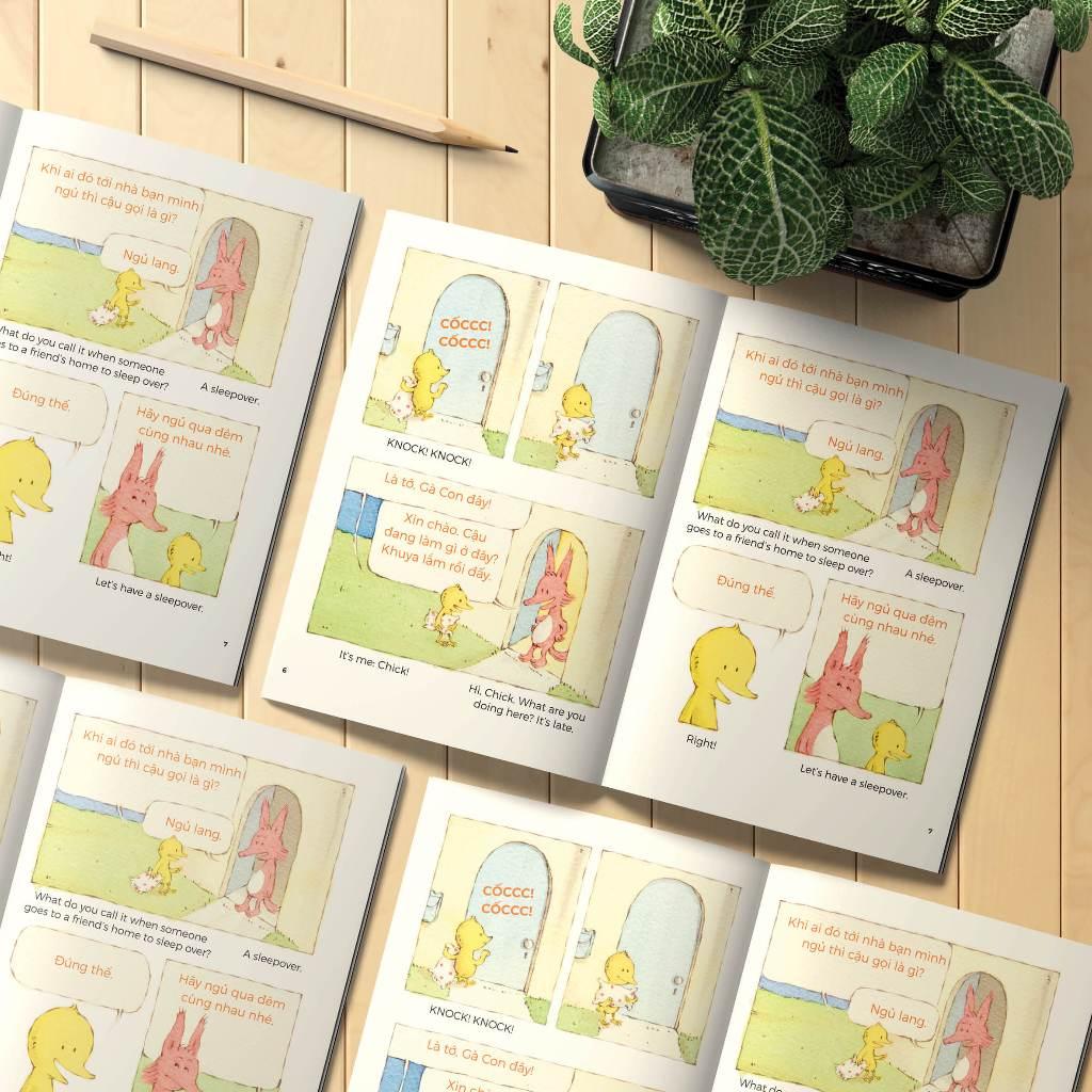 Sách được trình bày dạng song ngữ giúp các bé vừa đọc truyện vừa học tiếng Anh một cách dễ dàng, vừa giải trí, tăng vốn từ qua những câu chuyện đậm chất nhân văn nhằm nuôi dưỡng và rèn luyện trí thông minh cảm xúc (EQ) thông qua tình bạn diệu kỳ giữa Cáo và Gà Con. Mỗi cuốn sách có kèm phần từ vựng,