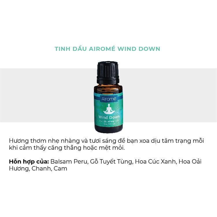 Mua tại TiktokCHI TIẾT MÙI HƯƠNG Wind Down Hương thơm nhẹ nhàng và tươi sáng để bạn xoa dịu tâm trạng mỗi khi cảm thấy căng thẳng hoặc mệt mỏi. Hỗn hợp của: balsam peru, gỗ tuyết tùng, hoa cúc xanh, hoa oải hương, chanh, cam THÔNG TIN SẢN PHẨM Mỗi mùi hương đều được kiểm tra chất lượng kỹ càng trong phòng thí nghiệm để tối đa hóa lợi ích. Chỉ cần 3 - 5 giọt tinh dầu Airome cho 100ml nước khi sử dụng đèn khuếch tán tinh dầu hoặc pha Airome với các loại dầu nền để sử dụng thoa ngoài da. Airomé giúp dễ dàng trải nghiệm liệu dễ dàng trải nghiệm liệu pháp hương thơm giống như tại spa ngay tại nhà. HƯỚNG DẪN SỬ DỤNG