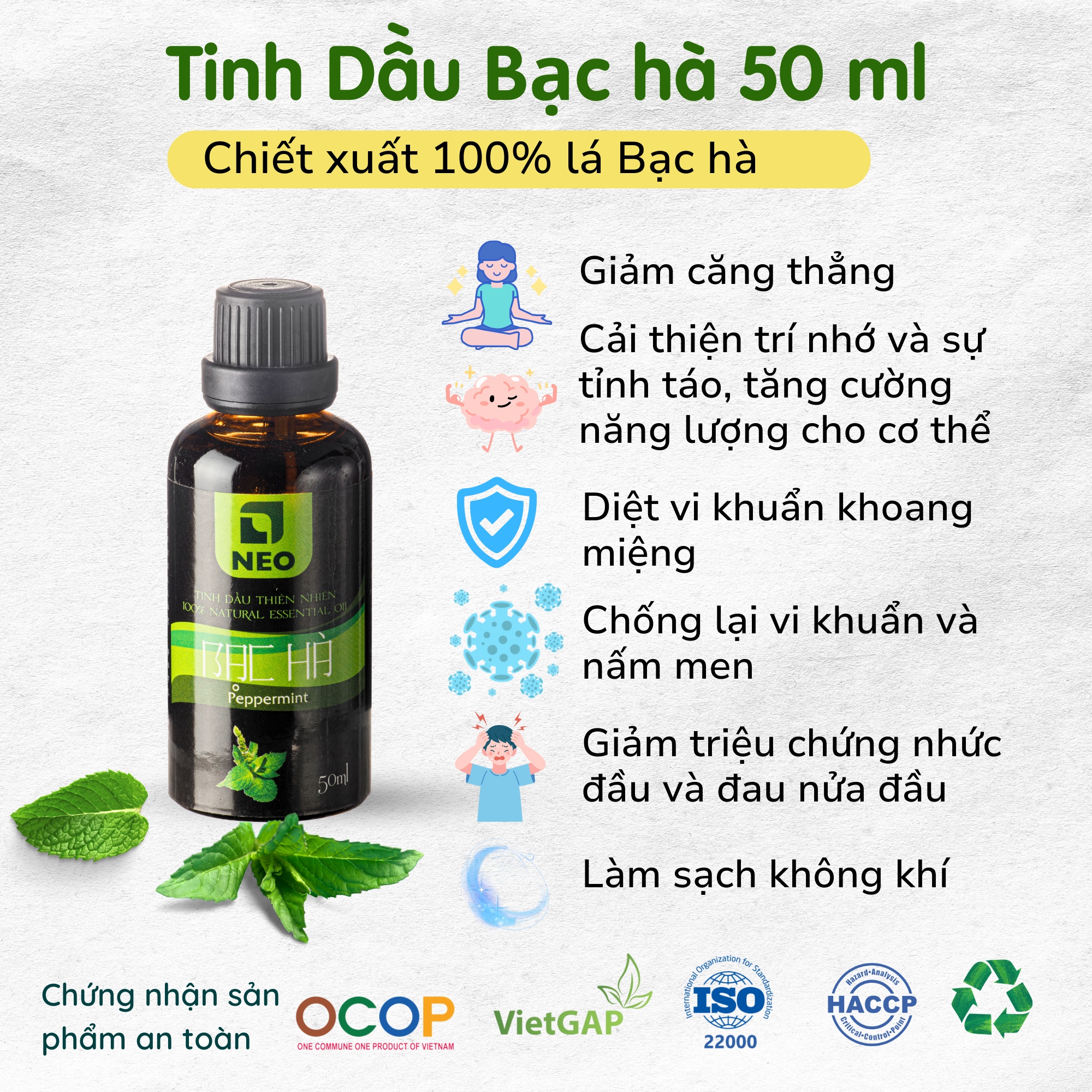 Thành phần chính của tinh dầu Bạc Hà:– Chiết xuất từ cây bạc hà bằng phương pháp lôi cuốn hơi nước.– Tinh chất Menthol và menthone là 2 thành phần chính của tinh dầu Bạc