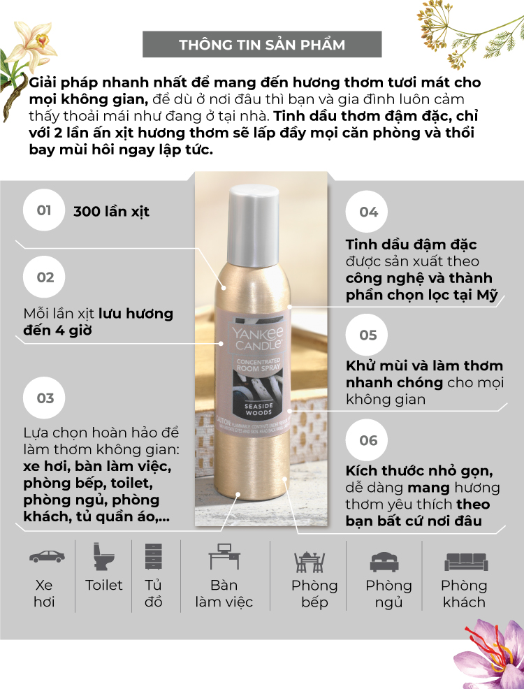 ✨Tinh dầu tán hương đậm đặc, dạng xịt Yankee Candle - Pink Sands (42.5g)