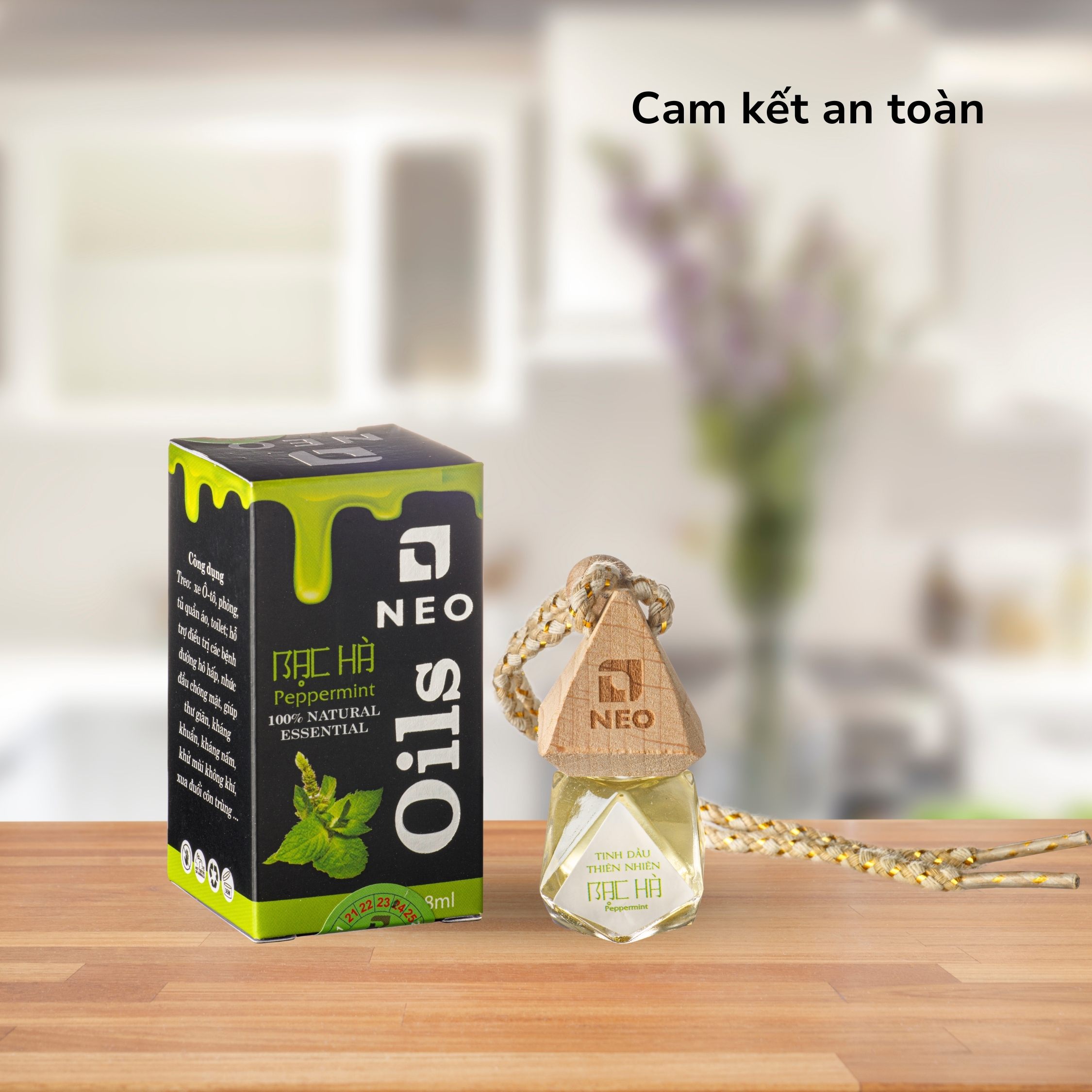 Tinh dầu bạc hà treo NEO có đầy đủ công dụng của tinh dầu bạc hà nguyên chất. Được đóng gói theo dạng chai treo 8ml tiện dụng, chai thuỷ tinh trong suốt, có nút gỗ thấm hút tốt và khuếch tán mùi hương hiệu quả.