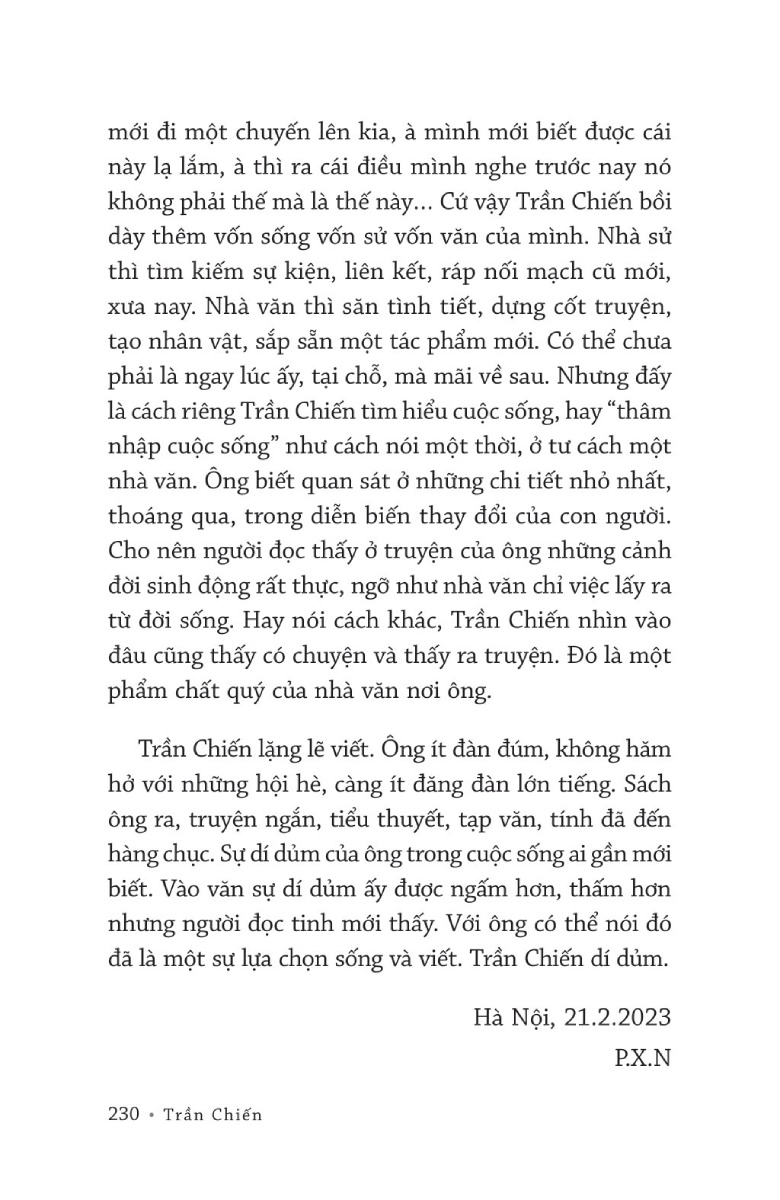 Mua tại TiktokTỏ Giăng Tỏ Đèn Với những câu chuyện đời thường dung dị nhà văn đã thể hiện sự trăn trở của mình với sự va đập văn hóa phố - làng cùng sự cô độc của "người làng" khi phải mưu sinh nơi phố thị. Nông thôn đang biến đổi, nhất là về vật chất. Nhưng tâm hồn con người thật ngổn ngang, nhiều vốn quý báu đang "trôi tuột". Trần Chiến - cây bút gắn chặt với Hà Nội - viết về những đổi thay của đời sống con người nông thôn hôm nay qua con mắt của một người ở phố nhưng đâu đó trong thẳm sâu vẫn "ngọ nguậy" đâu đó một làng quê trong mình. Tập truyện ngắn gồm những truyện xuất sắc về đề tài nông thôn đổi mới, đạt giải Nhất cuộc thi viết "Làng Việt thời hội nhập" của báo Nông thôn ngày nay .