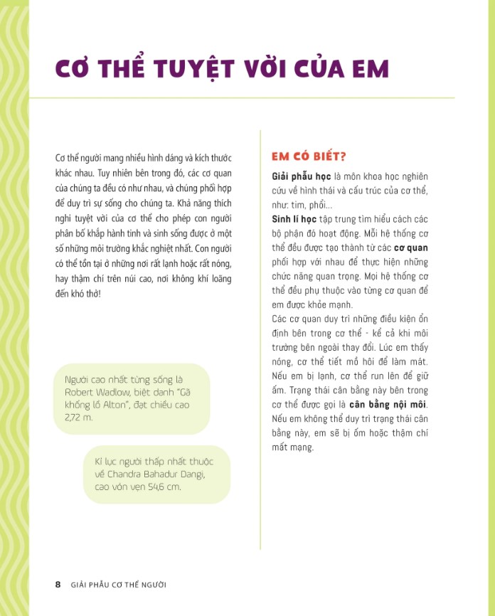 Mỗi bài học dạy em cách nghĩ như nhà khoa học và hành động như nhà thám hiểm bằng những câu hỏi gợi nhiều suy tưởng, truyền cảm hứng cho em khám phá đề tài. Sau mỗi bài học, em sẽ kiểm chứng ý tưởng của mình bằng cách áp dụng các kĩ năng quan sát. Sau đó, em sẽ suy ngẫm bằng cách ghi lại những suy nghĩ về thí nghiệm.
