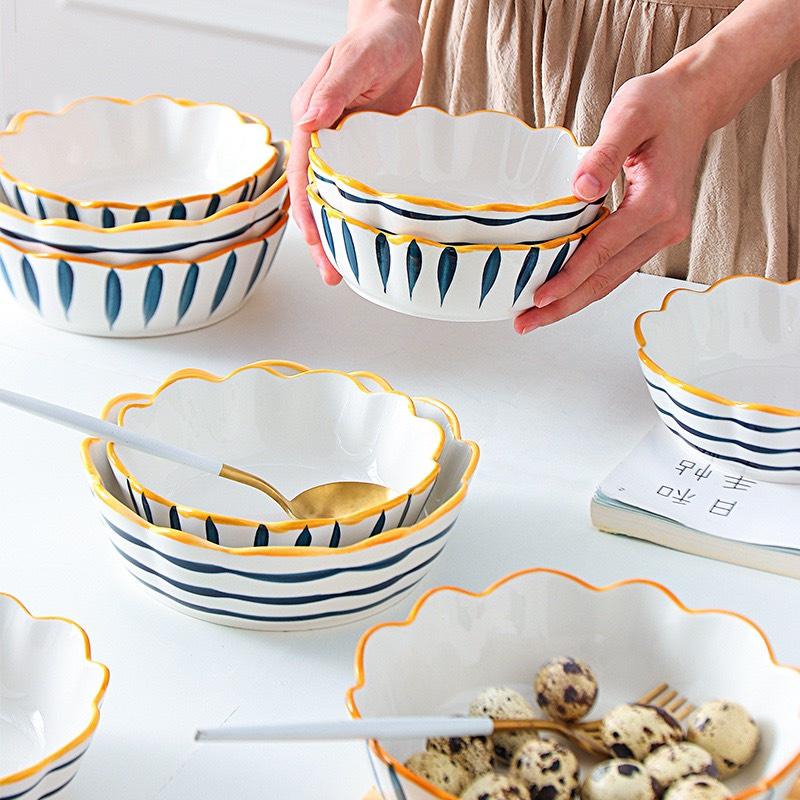 ✨Tô viền hoa phong cách Nhật Bản, Viền vàng, xinh xắn, bắt mắt, men sáng bóng