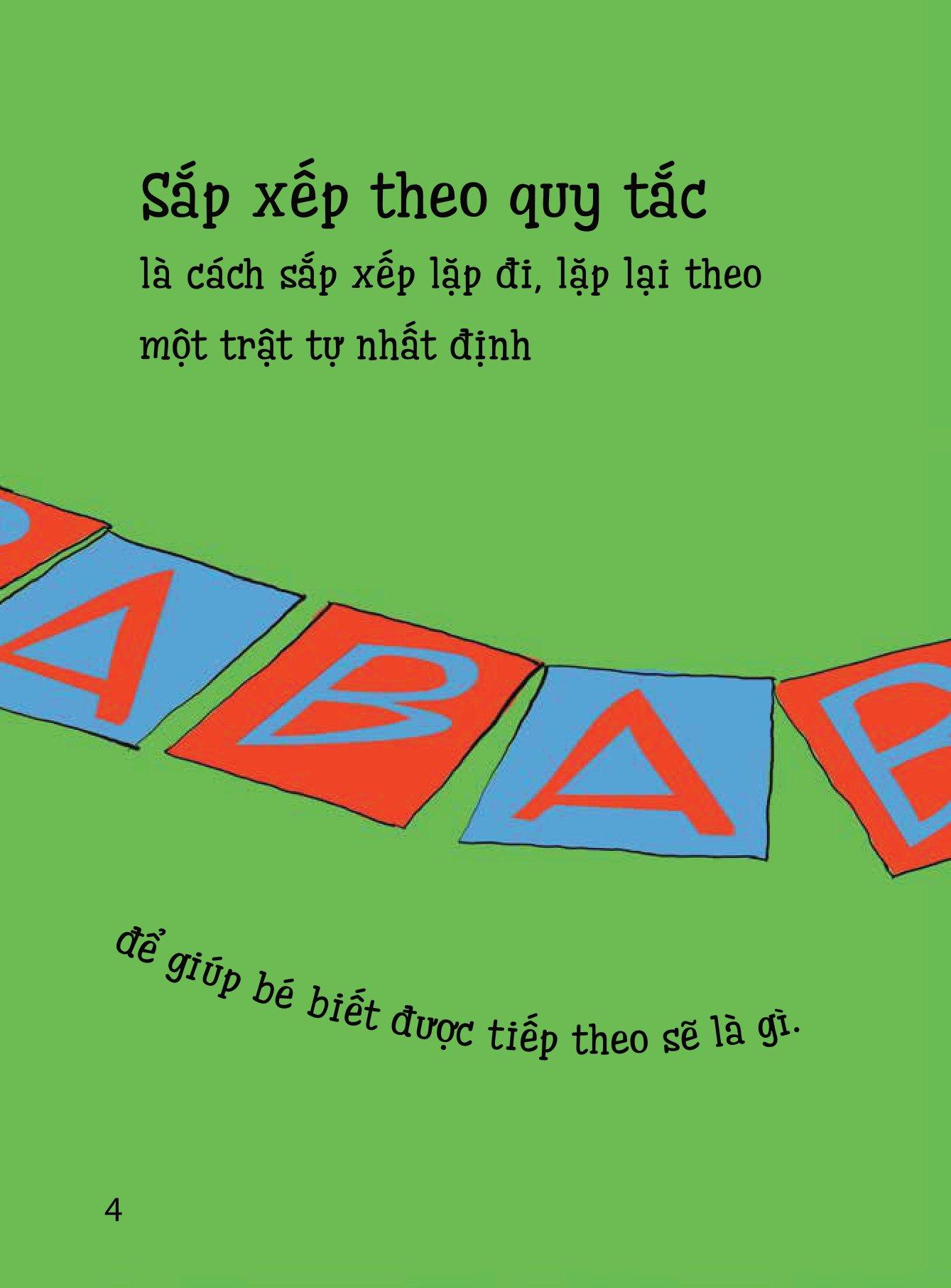 Đỏ, xanh, đỏ… rồi đến màu gì nhỉ?: Giúp bé làm quen với khái niệm sắp xếp theo quy tắc với các ví dụ từ màu sắc, hình dạng, đồ vật gần gũi xung quanh bé.