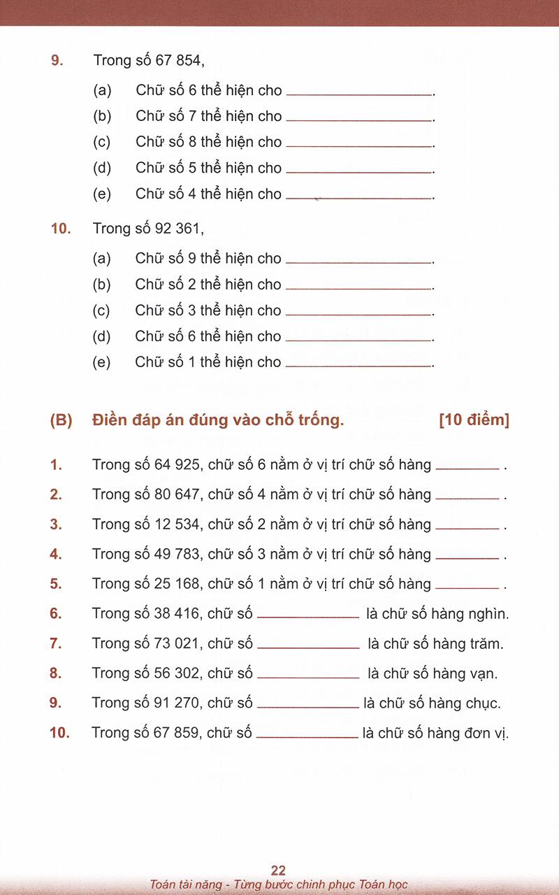 Toán Tài Năng là bộ sách tham khảo song ngữ dành cho học sinh bậc tiểu học từ lớp 1 tới lớp 5 một cách hệ thống, toàn diện và đầy đủ nhất từ Singapore theo phương pháp học tiên tiến gồm nhiều các chuyên đề thực hành với nhiều các dạng toán khác nhau theo thứ tự từ khó đến dễ một cách logic để các học sinh có thể tự học, tham khảo và từng bước chinh phục Toán học. Toán Tài Năng đã được chính phủ Singapore đặt hàng để tiến hành giảng dạy tại một số trường công cùng với Sách Giáo Khoa.