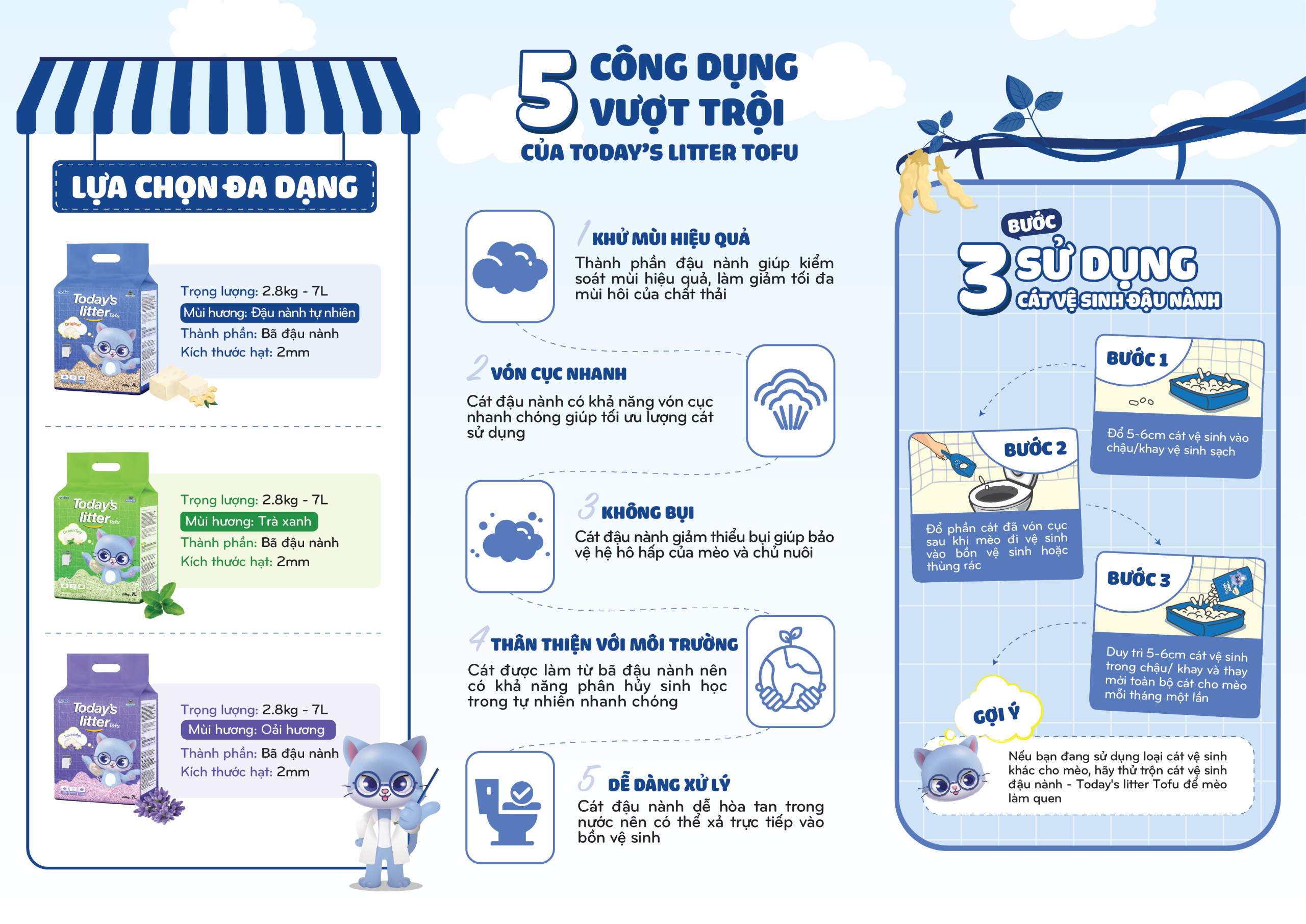 ✨TODAY'S LITTER - Cát vệ sinh từ đậu nành tự nhiên cho mèo, KHỬ MÙI TỐT, VÓN NHANH , 7Lít .